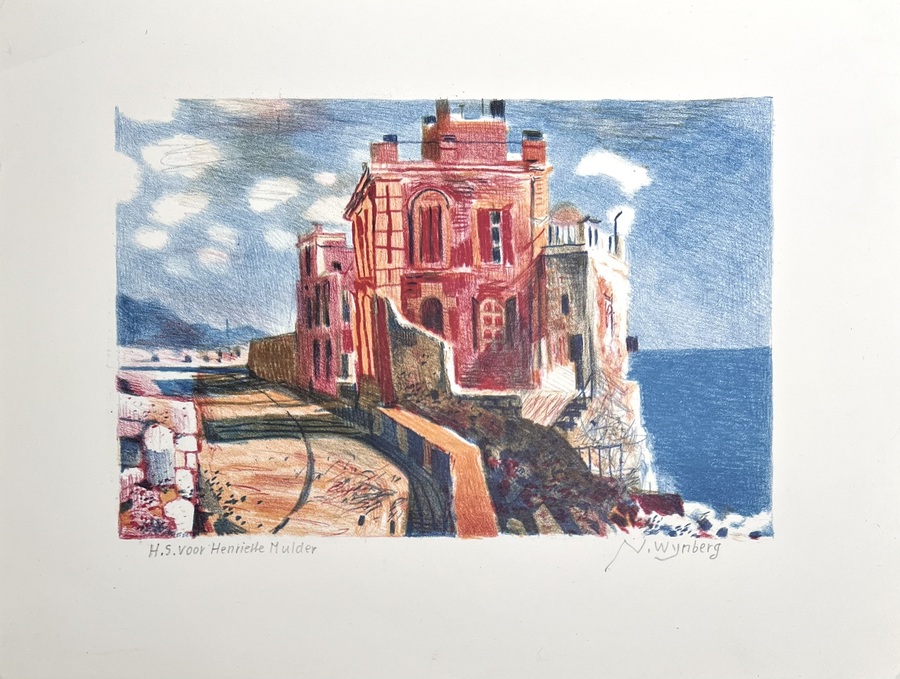 Ets en litho, Nicolaas Wijnberg – dorpsgezicht en huis aan zee, midden 20e eeuw