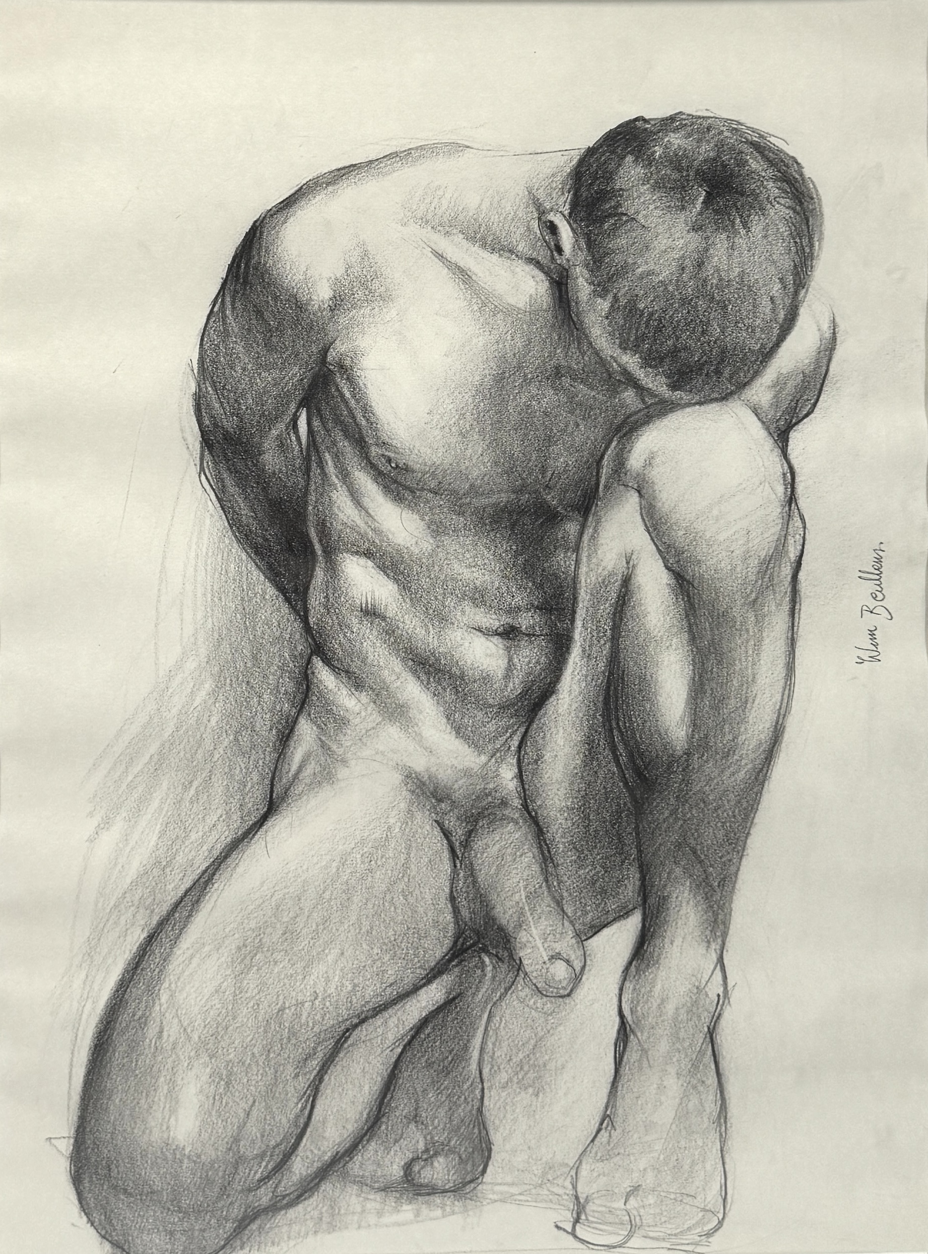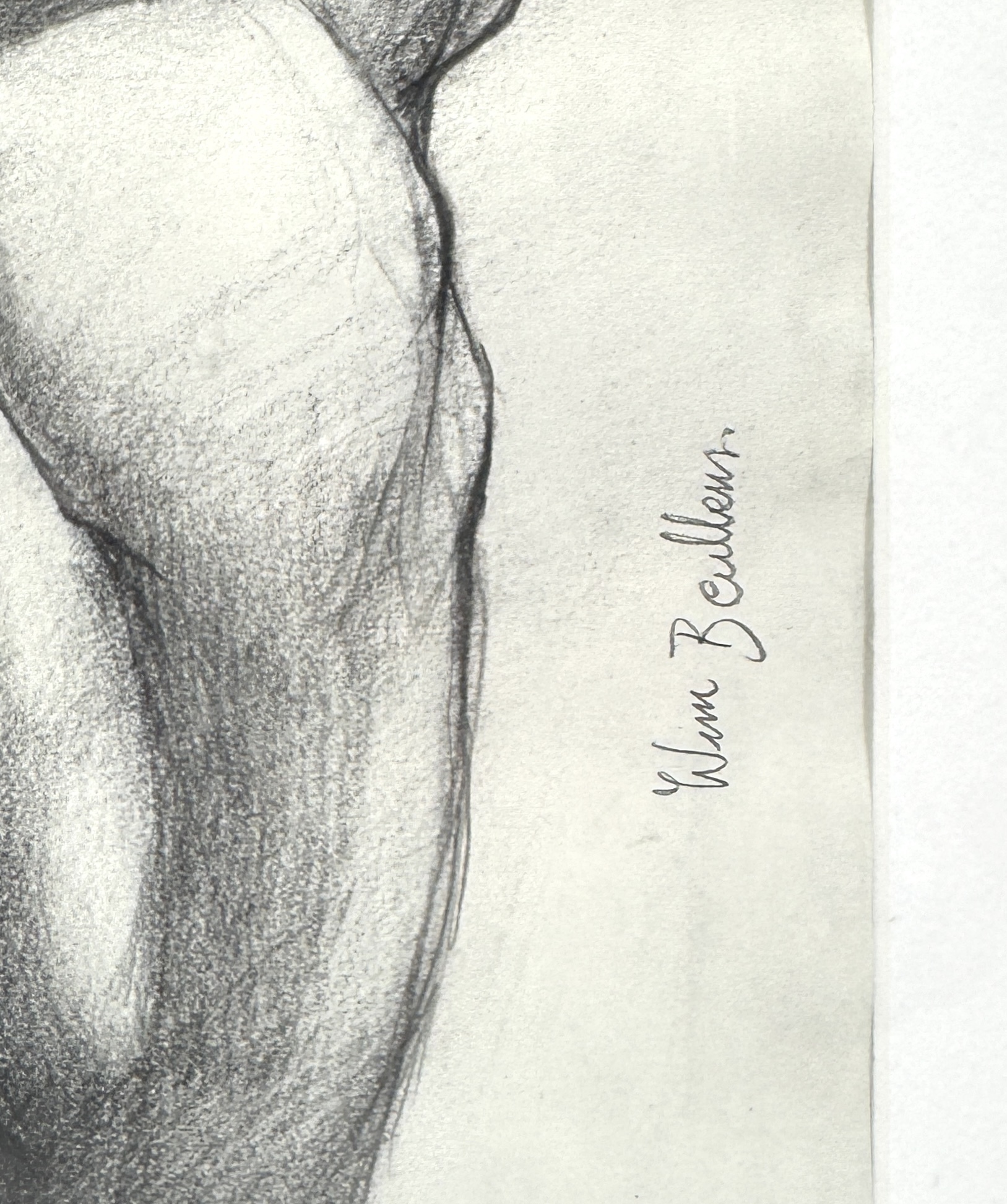 Tekening, Wim Beullens – realistische mannelijk naakt, tweede helft 20e eeuw