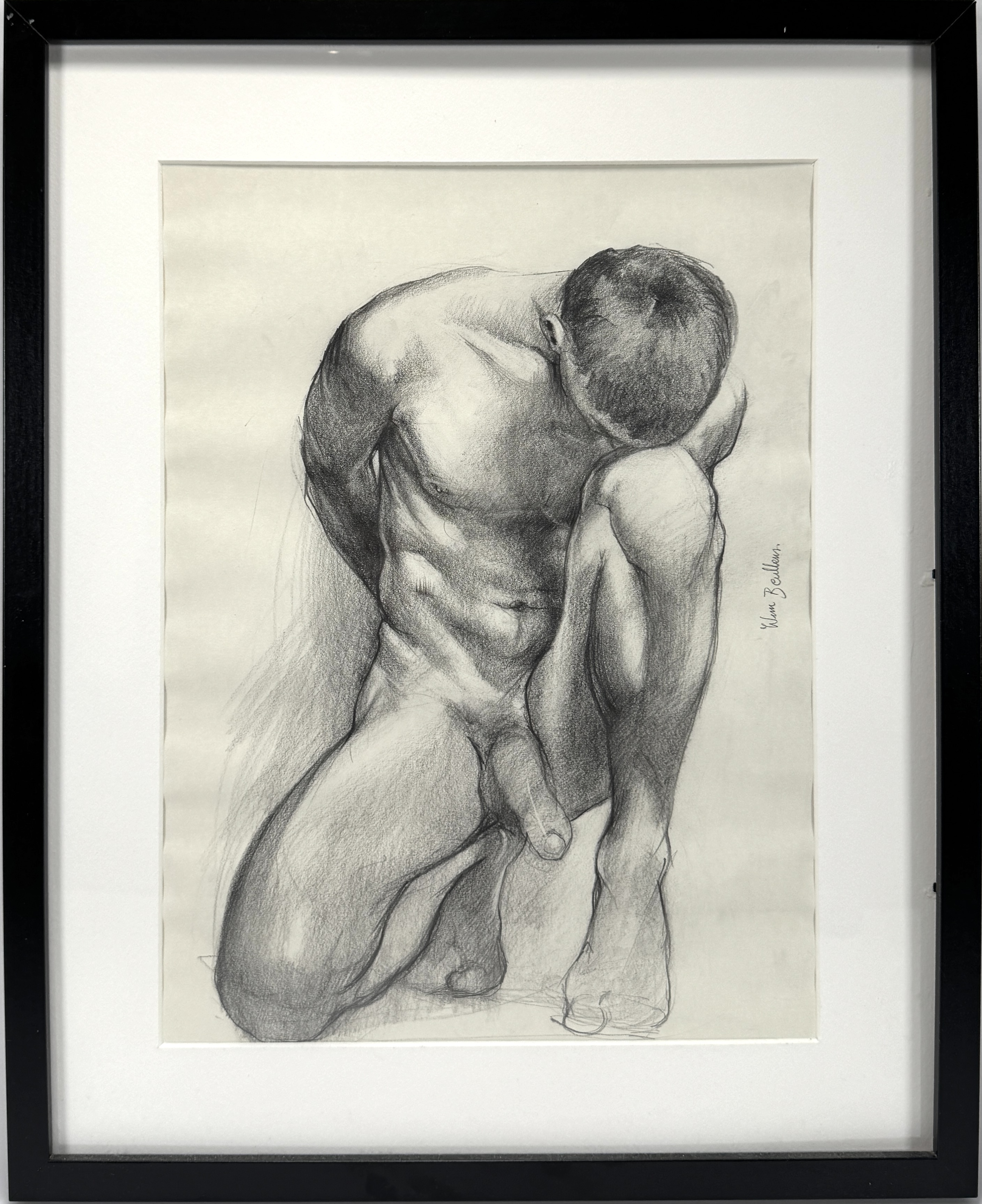 Tekening door Wim Beullens, uitgevoerd in potlood op papier, tweede helft 20e eeuw. De realistische naaktstudie toont een gehurkte mannelijke figuur in een introspectieve houding. Het werk is uitgevoerd met een fijne arceringstechniek en krachtige tonale gradaties, die de anatomie en het volume van de figuur nauwkeurig weergeven.. Rechts midden gesigneerd ‘Wim Beullens’. Belgische herkomst. Geïnteresseerd? Bezoek onze kijkdagen op 28, 29 of 30 november van 11:00 tot 17:00 uur! |