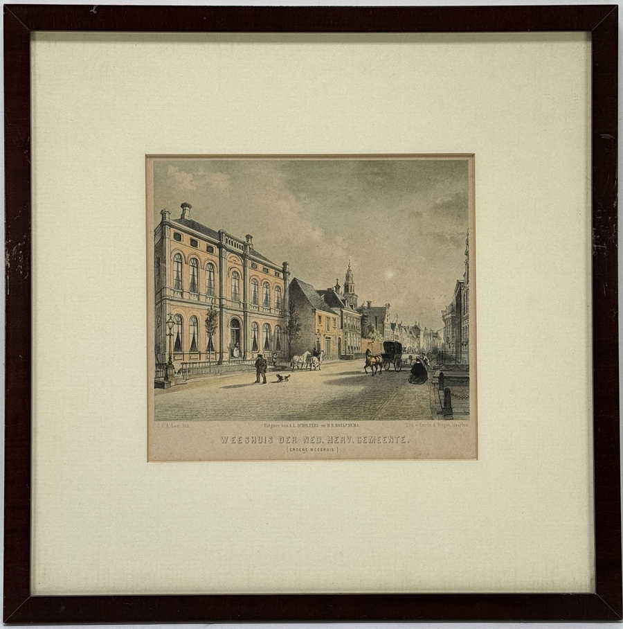 Litho op papier door C. C. A. Last (1808–1876) toont het “Weeshuis der Ned. Herv. Gemeente (Groene Weeshuis)” in Groningen. Het stadsgezicht in fijn uitgewerkte 19e-eeuwse stijl werd gedrukt door Emrik & Binger te Haarlem en uitgegeven door A. L. Scholtens en H. R. Roelfsema. Klaar om te bieden? Registreer je nu en doe mee aan de veiling! |