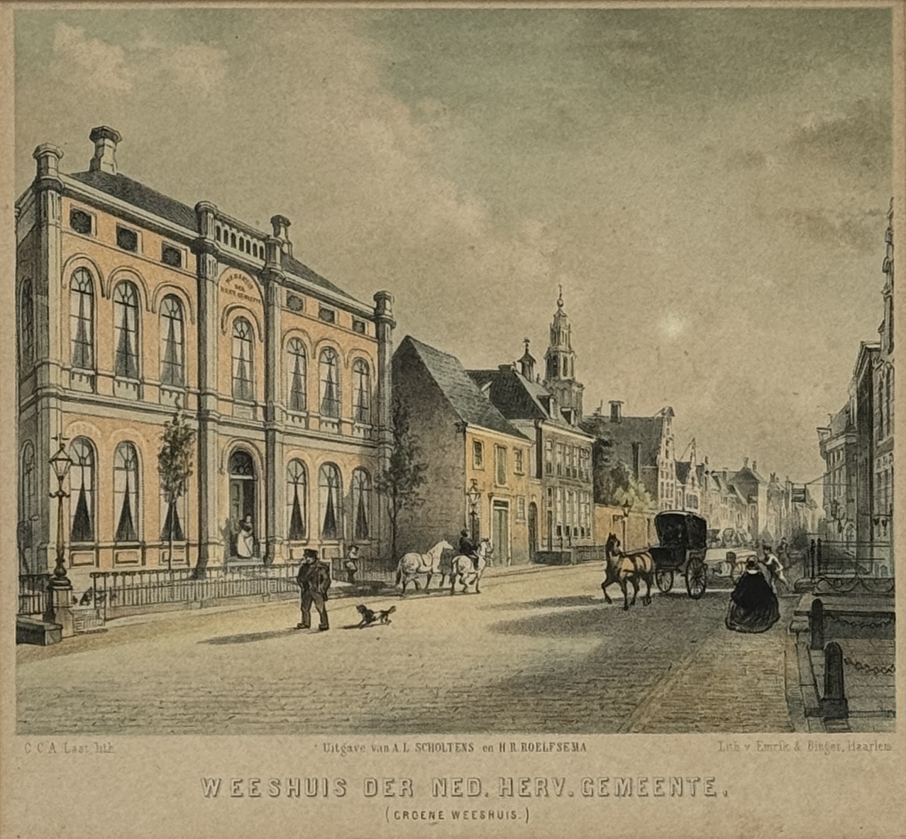 Litho, C.C.A. Last – Groene Weeshuis Groningen, 19e eeuw