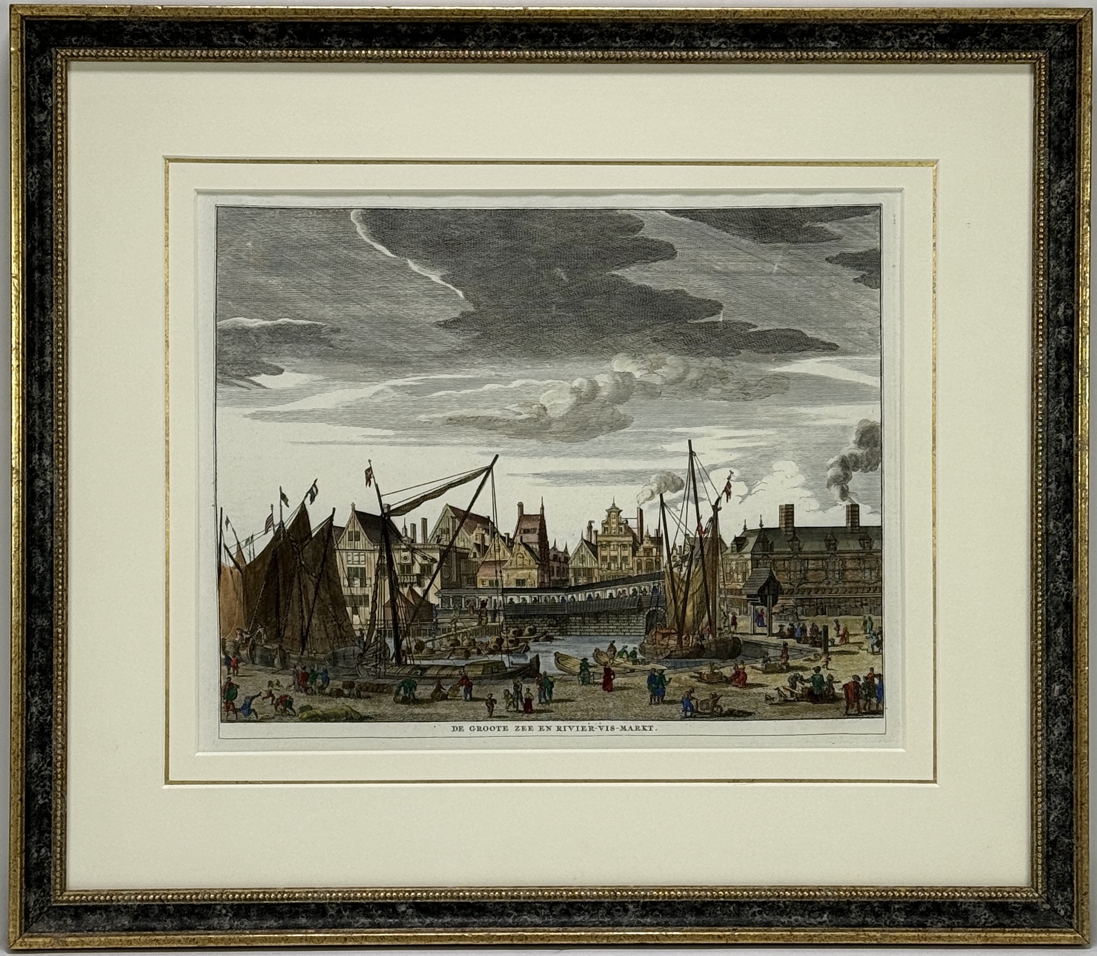 Kopergravure, Casparus Commelin – De Groote Zee en Rivier-Vismarkt, 1726