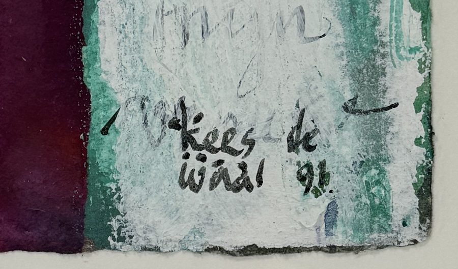 Gemengde techniek (gouache en acryl) op papier, door Kees de Waal (1922–2025), 1991. Titel “Clown”, expressief-figuratief tweeluik met links een gestileerde clown en rechts een expressief portret, met handgeschreven tekst onderaan. Gesigneerd en gedateerd rechtsonder. Uitgevoerd in krachtige tinten rood, groen en blauw, in zilverkleurige lijst met wit passe-partout. Geïnteresseerd? Bezoek onze kijkdagen op 28, 29 of 30 november van 11:00 tot 17:00 uur! |