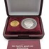 | Afmetingen | Gouden 900/1000 tientje diameter 22,5 mm en gewicht 6,72 gram. Zilveren 925/1000 penning diameter 38 mm en gewicht 25 gram. | |