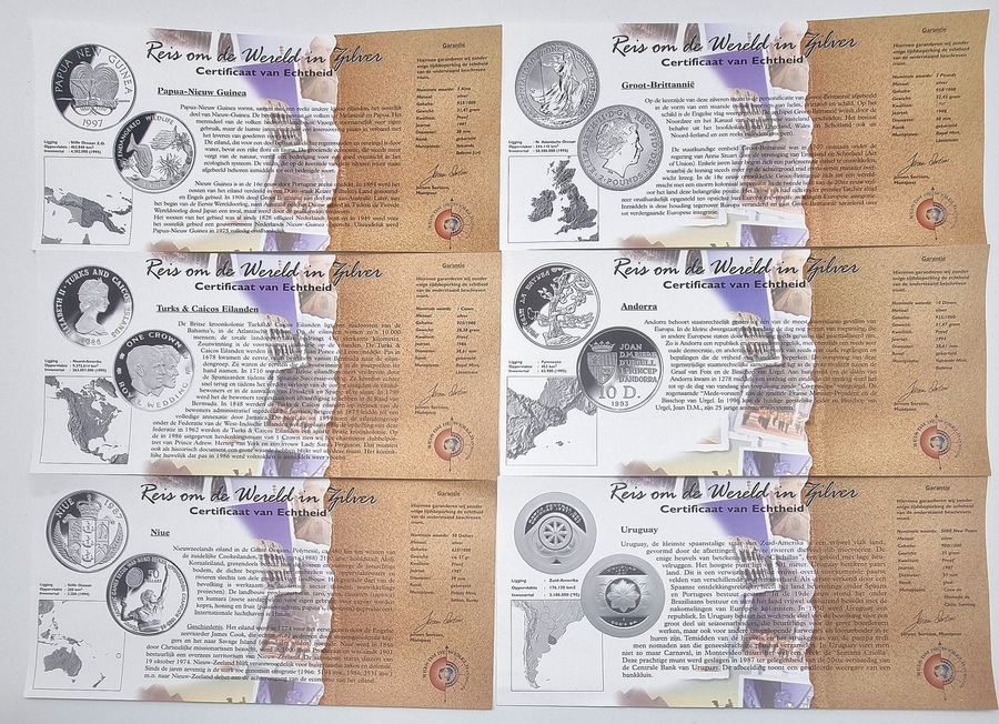 Zilveren muntset “Reis om de Wereld in Zilver”, ca. 1990-2000 Nederland