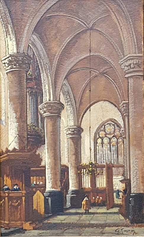 Olieverfschilderij, G. Koopman – Nieuwe Kerk te Delft, eind 19e eeuw
