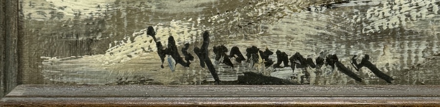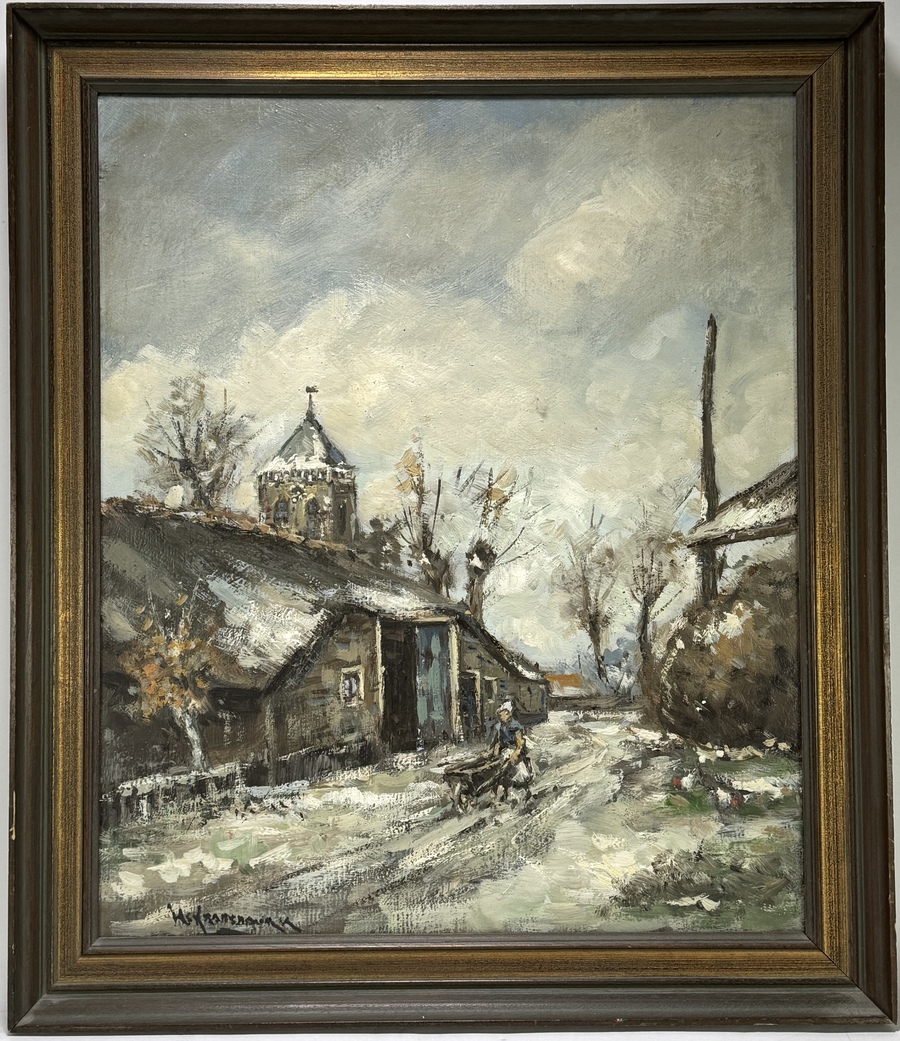 Olieverfschilderij, H.C. Kranenburg, winter tafereel, realistisch-impressionistische stijl, 1950