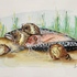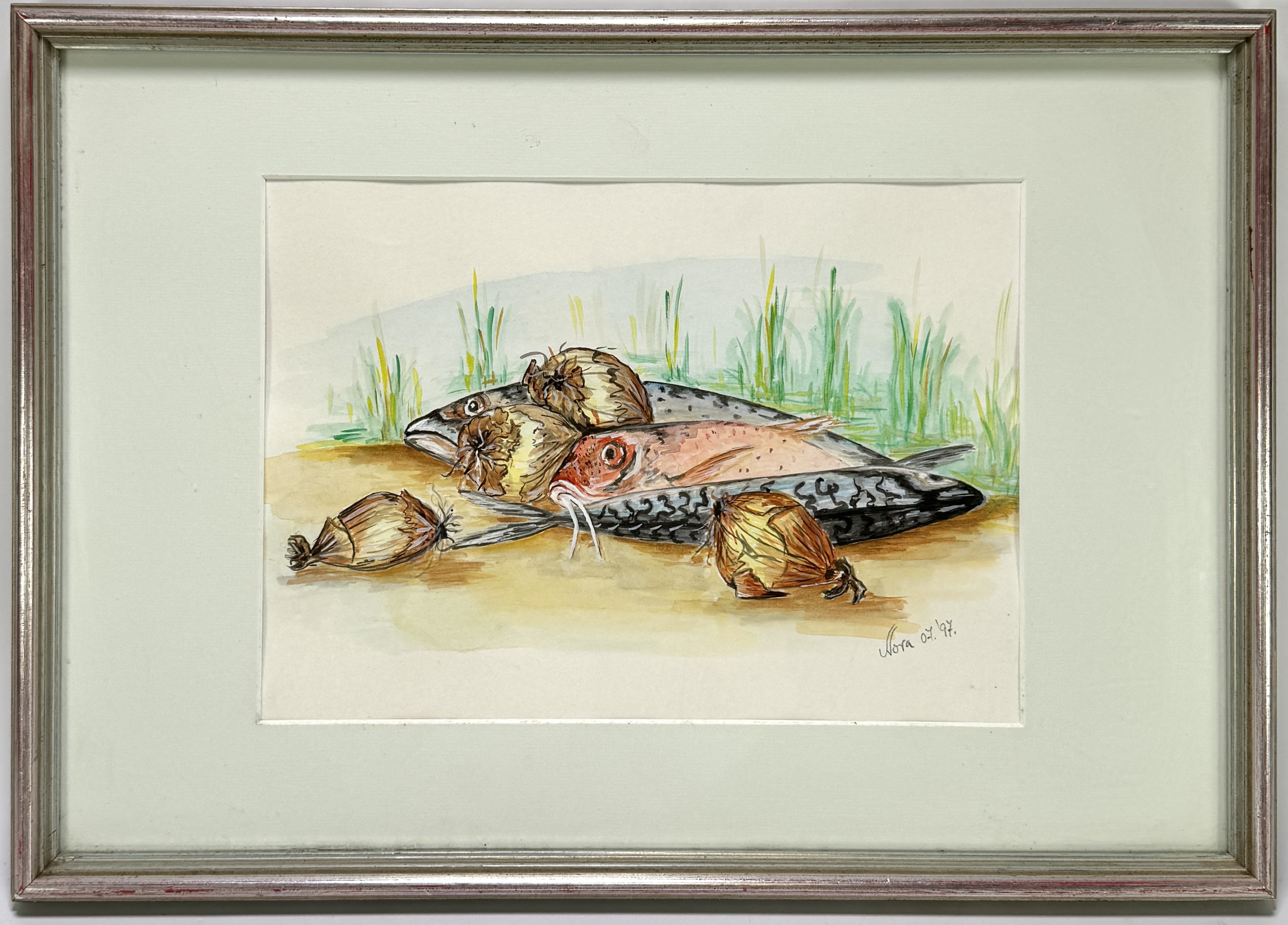 Aquarel, Nora – stilleven met vissen en uien, 1997