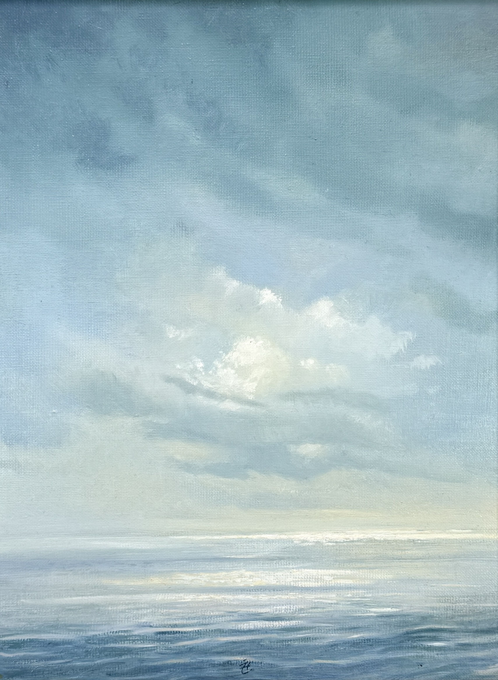 Olieverfschilderij, Jan-Hendrik Dolsma – zeegezicht “Morgen”, eind 20e eeuw