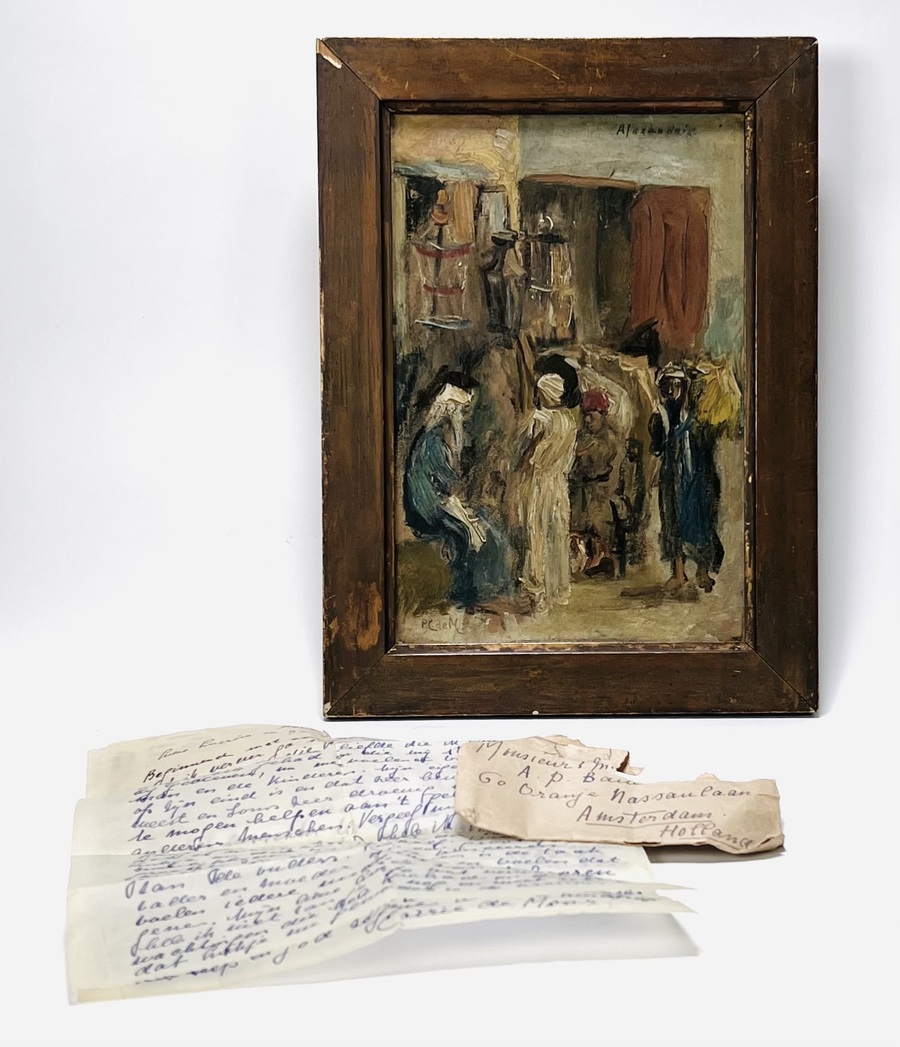 | Kavelnummer en naam | 34. Olieverfschilderij, P.C. de Moor – oriëntalistische straatscène “Alexandrië”, eerste helft 20e eeuw | |