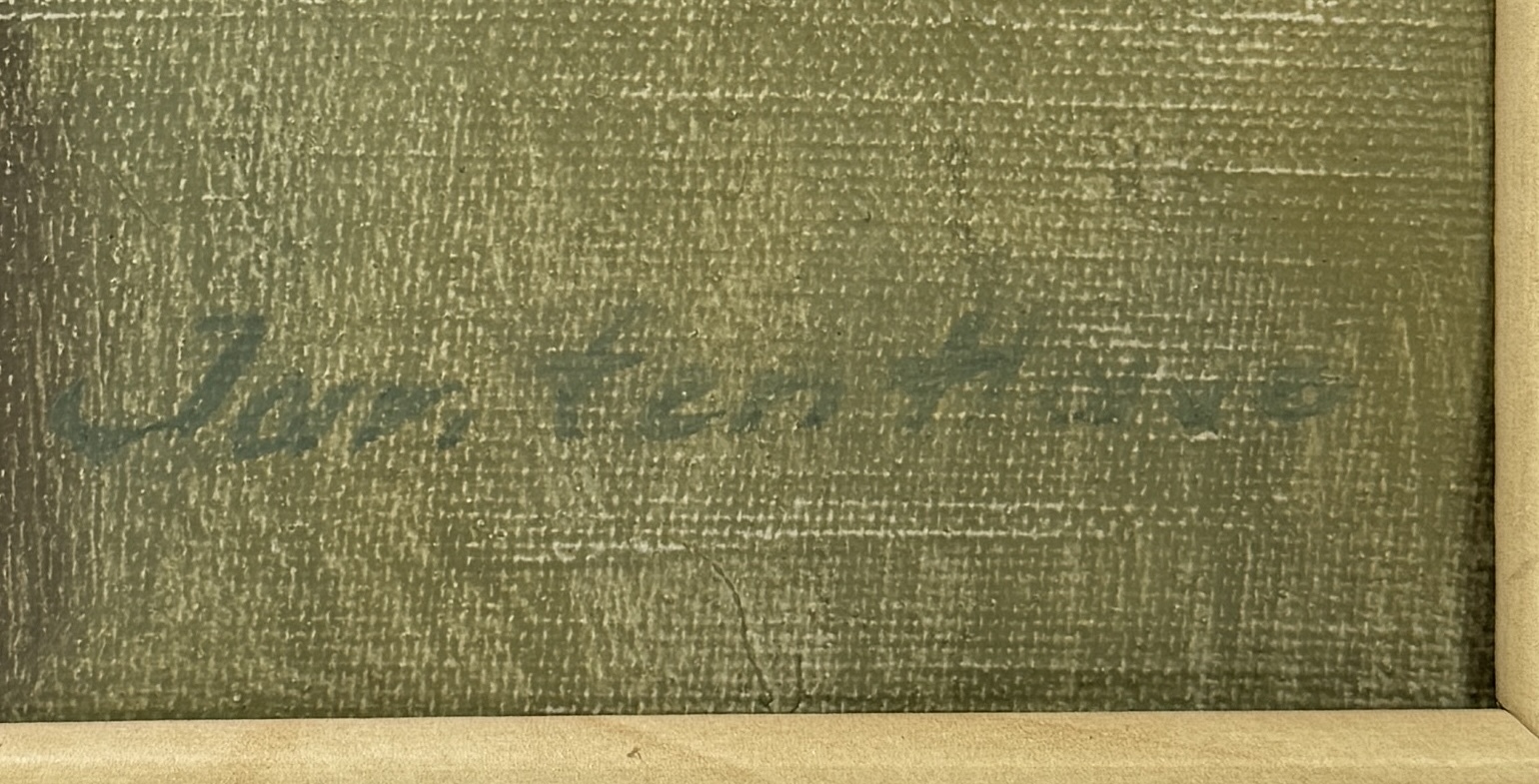 Olieverf op doek door Jan ten Have (1903–1991), midden 20e eeuw, in realistische stijl met impressionistische toets. Voorstellende een klassiek stilleven met een fazant en fruit op een gedrapeerd kleed. De losse penseelvoering en aardse kleurtonen kenmerken dit werk, dat is gesigneerd rechtsonder en voorzien van ateliernummering op de achterzijde. Gevat in een houten lijst met eenvoudige afwerking. Geïnteresseerd? Bezoek onze kijkdagen op 28, 29 of 30 november van 11:00 tot 17:00 uur! |