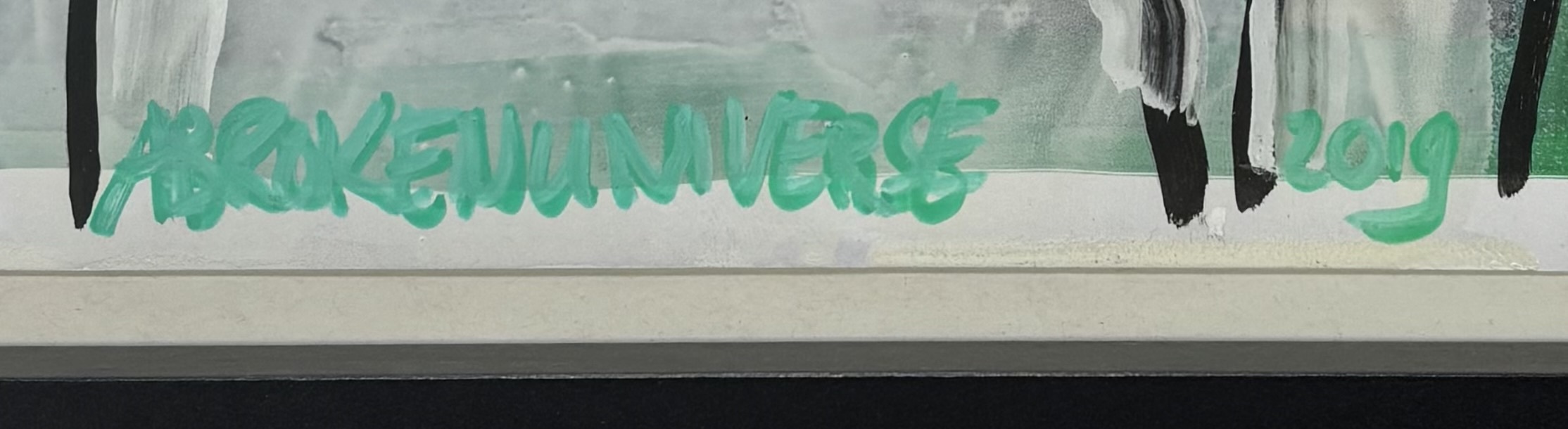 Mixed media op papier, A Broken Universe – figuur met tekst, 2019