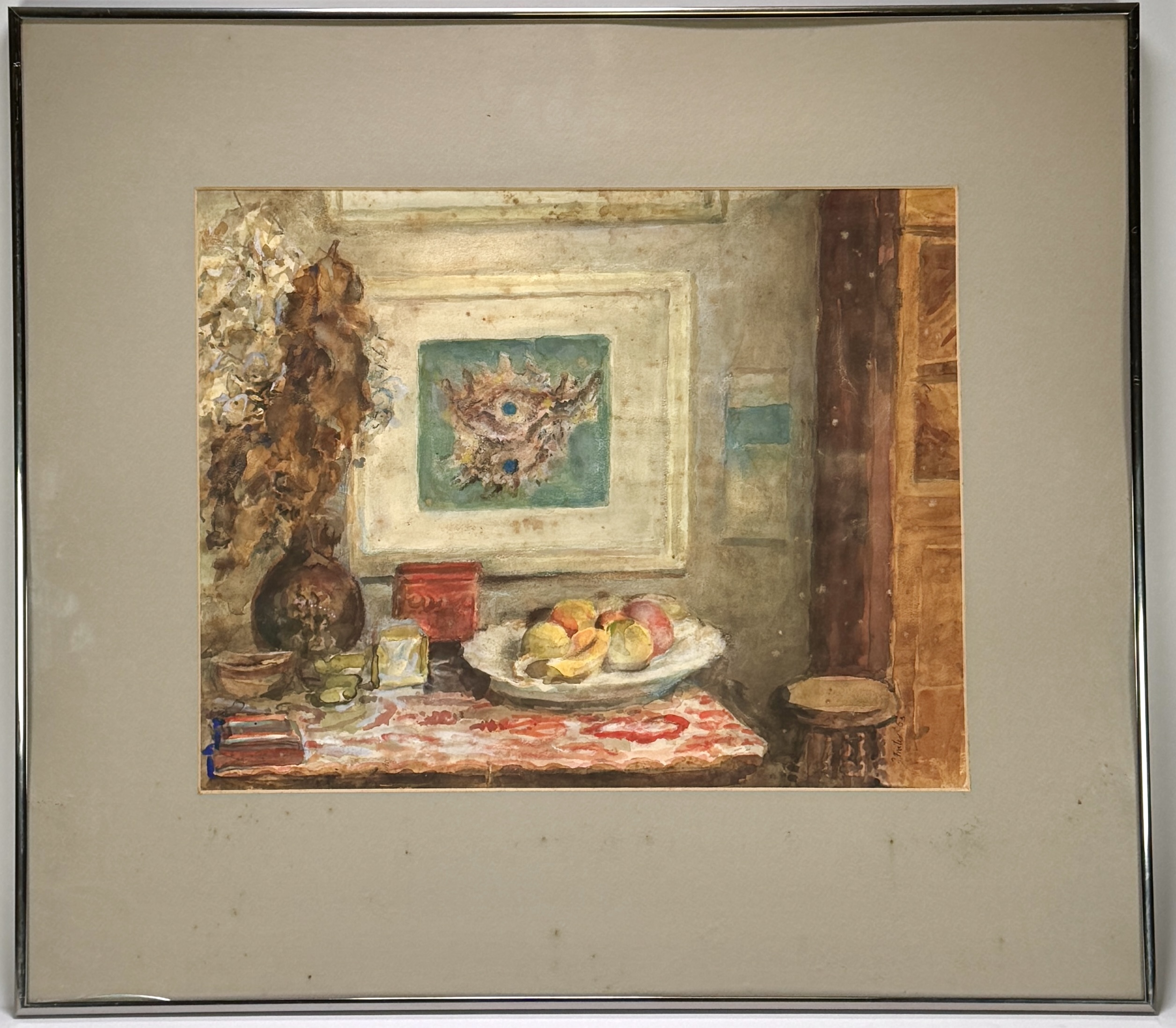 Aquarel, Frater – stilleven met fruit en interieur, 1963