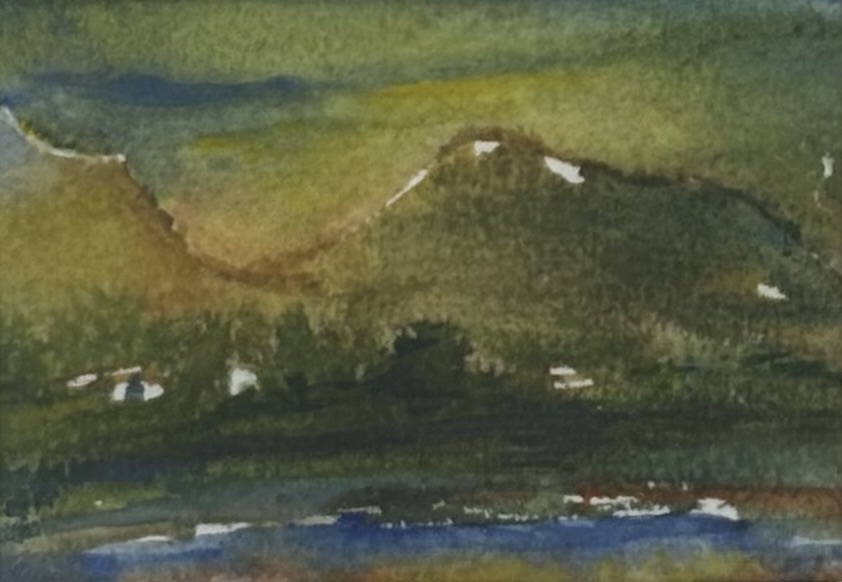 Aquarel, Maarit Hivand – landschap met bergen en water, 2000