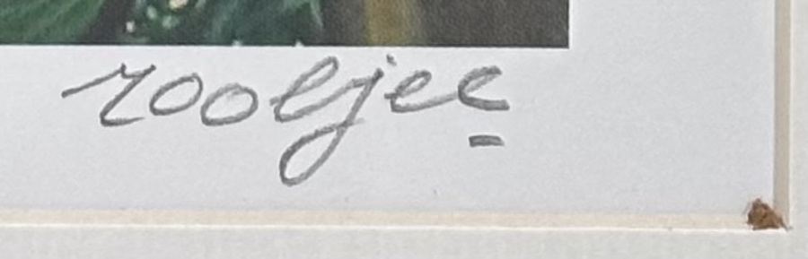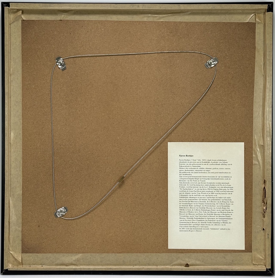 Kleurenlitho op papier (tweede helft 20e eeuw) door Pjeroo Roobjee (1945) getiteld “De verteller” toont een expressieve zittende figuur bij een vurige pot, omringd door surrealistische motieven. Het werk is linksonder genummerd 22/390 en rechtsonder gesigneerd in potlood, buiten de plaat. De litho bevindt zich in een zwarte lijst met brede passe-partout. Eerst deze lithografie zien voordat je biedt? Bezoek onze kijkdagen op 28, 29 en 30 november van 11:00 tot 17:00 uur! |