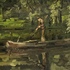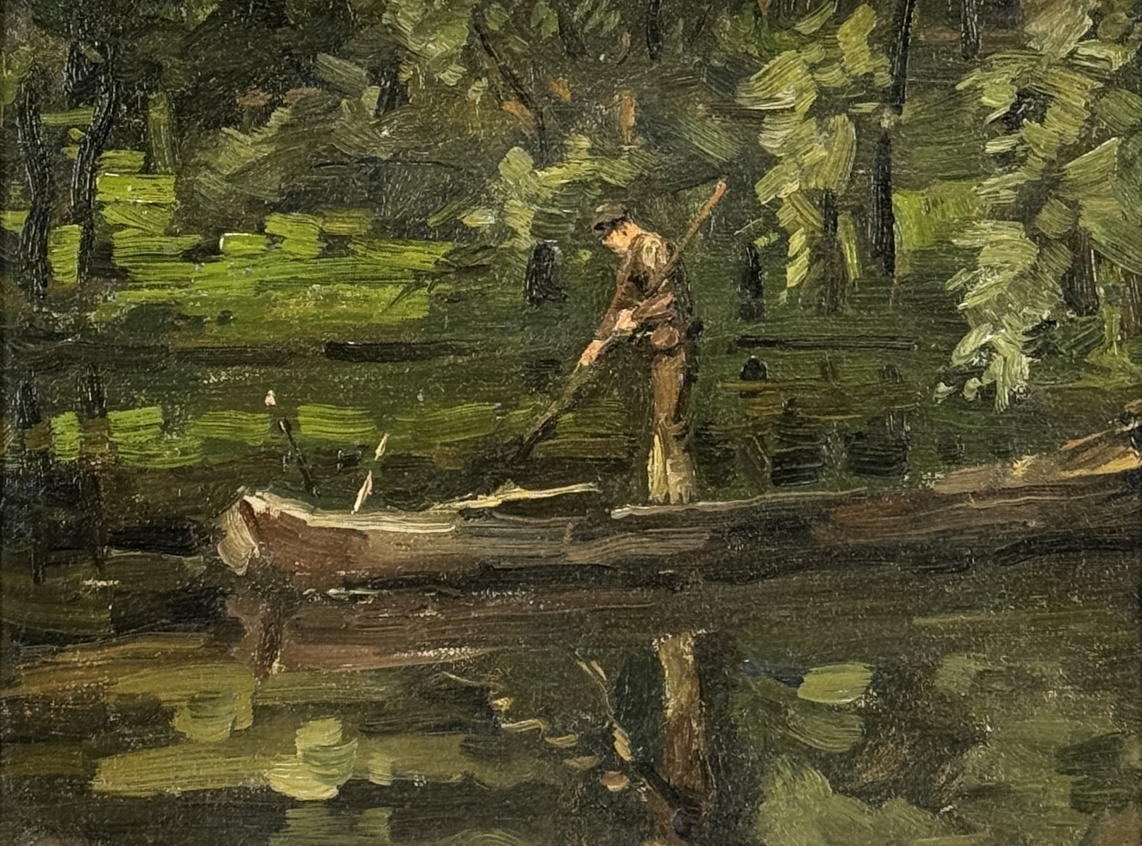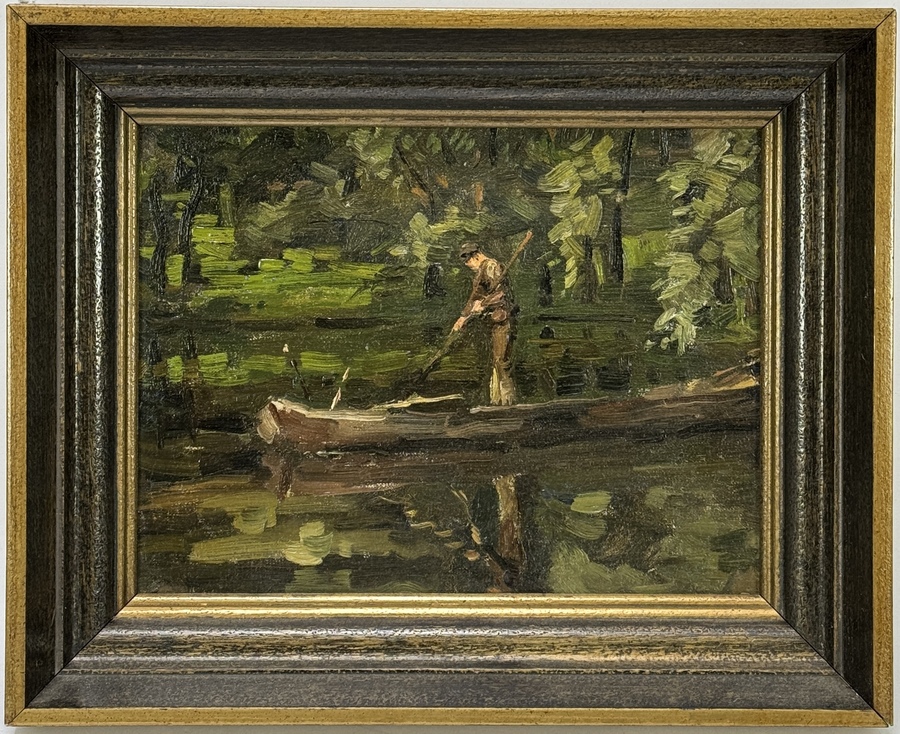 Olieverfschilderij – kano in boslandschap, Haagse School, 2e helft 19e eeuw