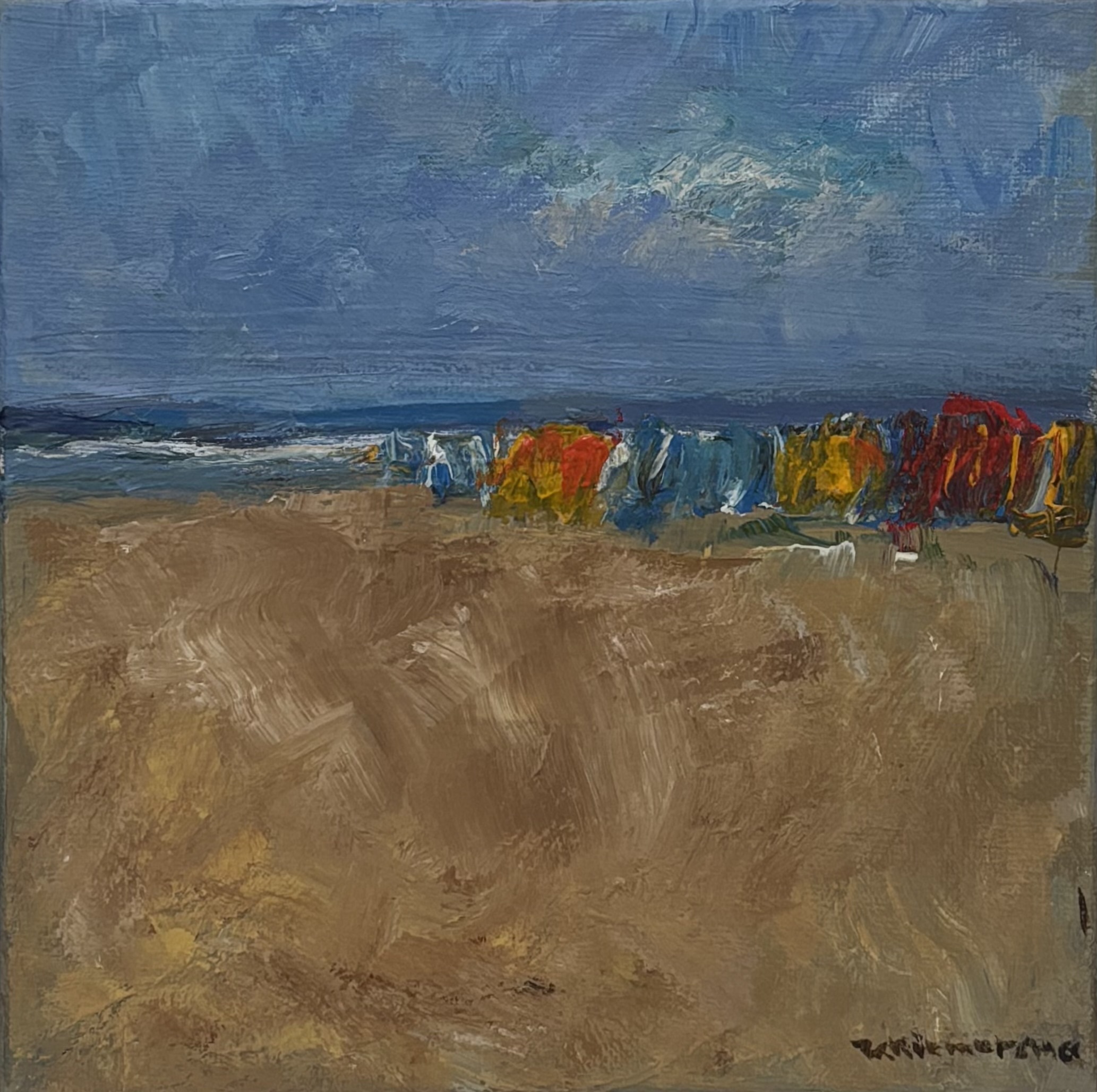 Olieverfschilderij, strand tafereel, tweede helft 20e eeuw, Nederland