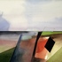 Aquarel, Mark de Klijn – abstract landschap, 1990, Nederland