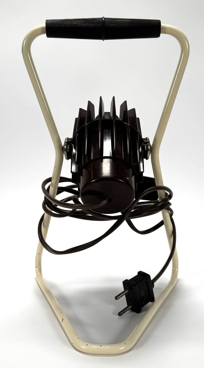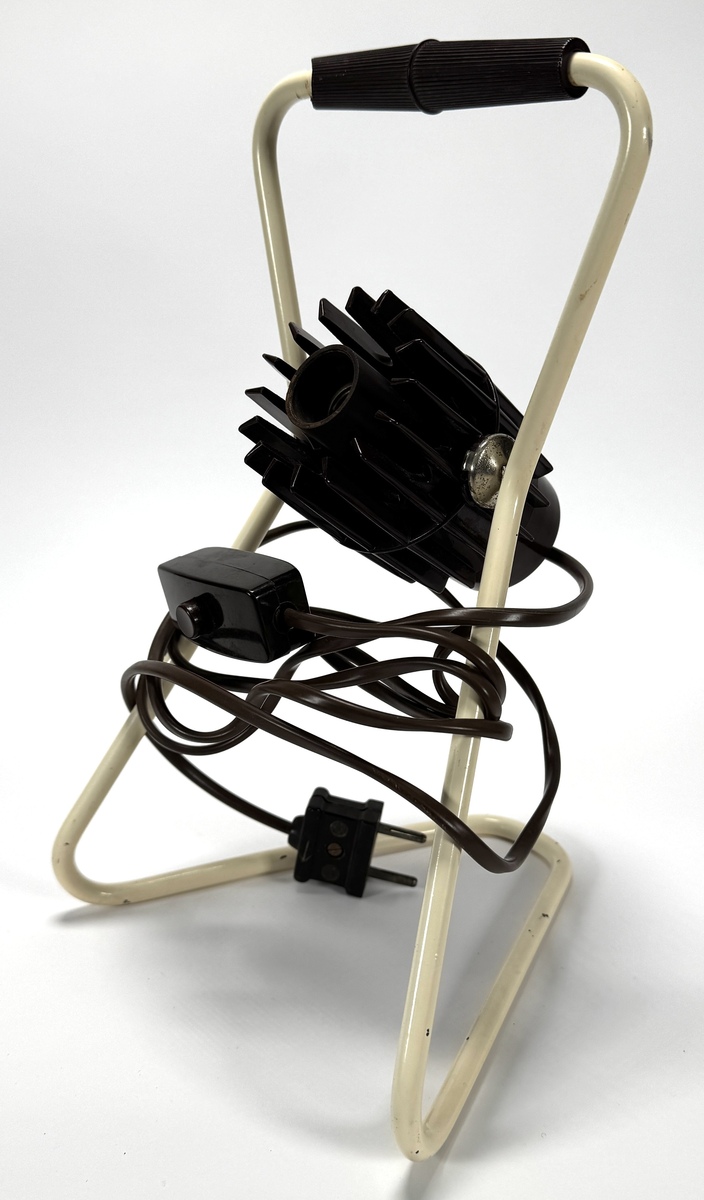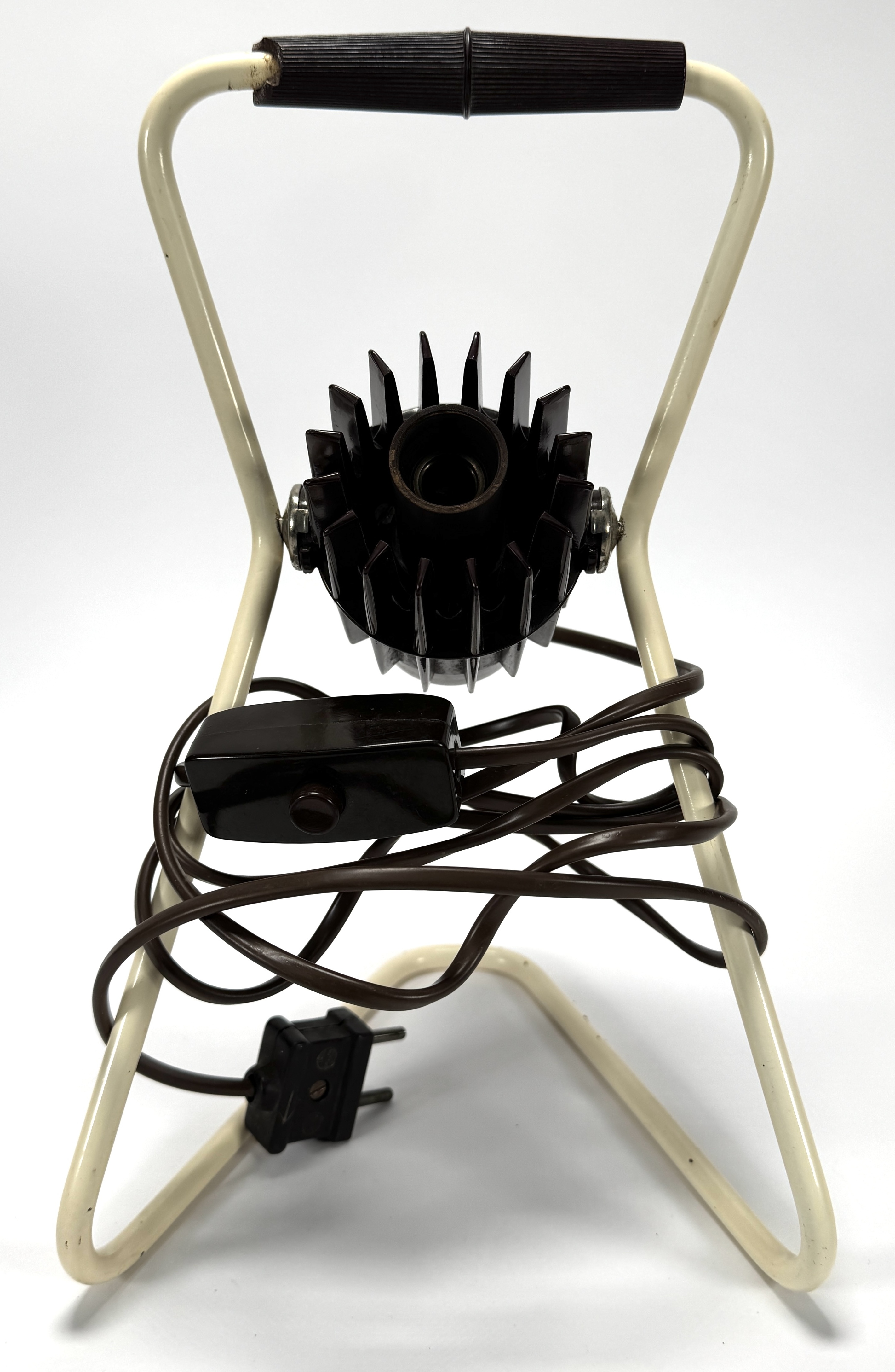 Tafellamp Philips model KL2901, midden 20e eeuw, uitgevoerd in gelakt stalen buisframe met kunststof (bakeliet) lamphuis voorzien van koelribben, verstelbaar scharniermechanisme en originele kabel met schakelaar. Ontworpen als industriële werk- of bureaulamp in modernistische stijl, geproduceerd door Philips Eindhoven. Geïnteresseerd? Bezoek onze kijkdagen op 28, 29 of 30 november van 11:00 tot 17:00 uur! |