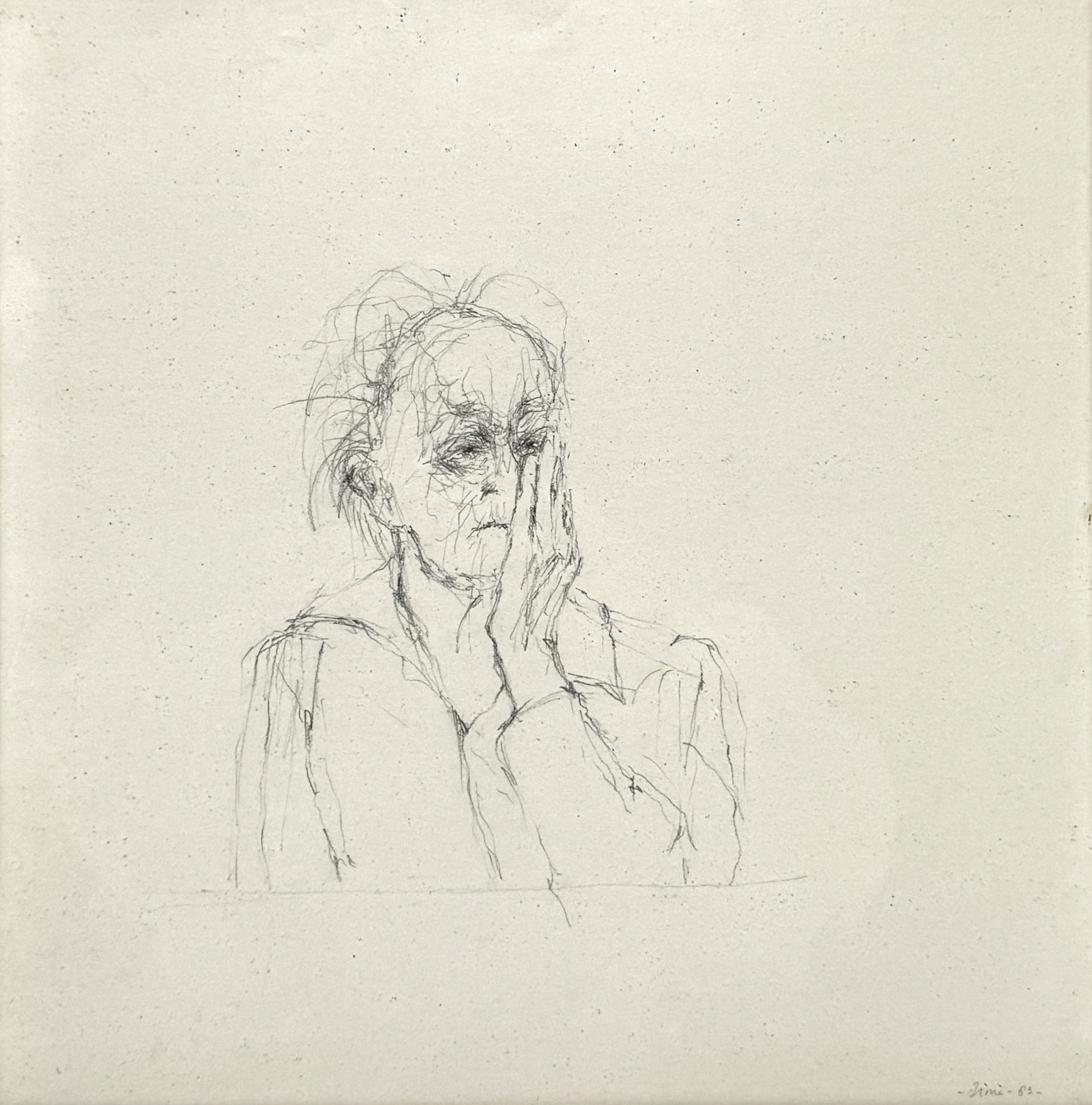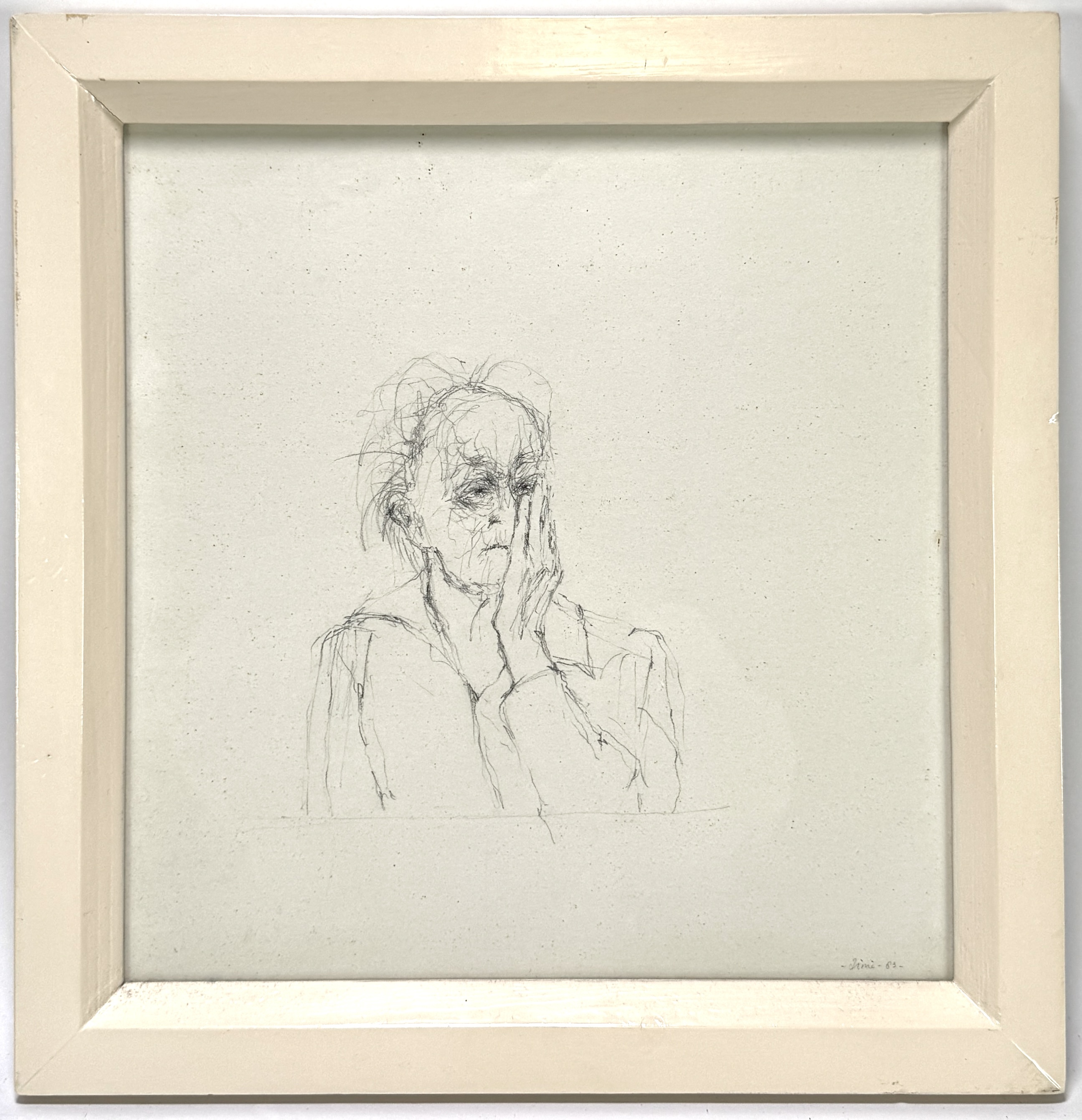 Tekening, Dinie Boogaart – “Demente bejaarde”, 1983
