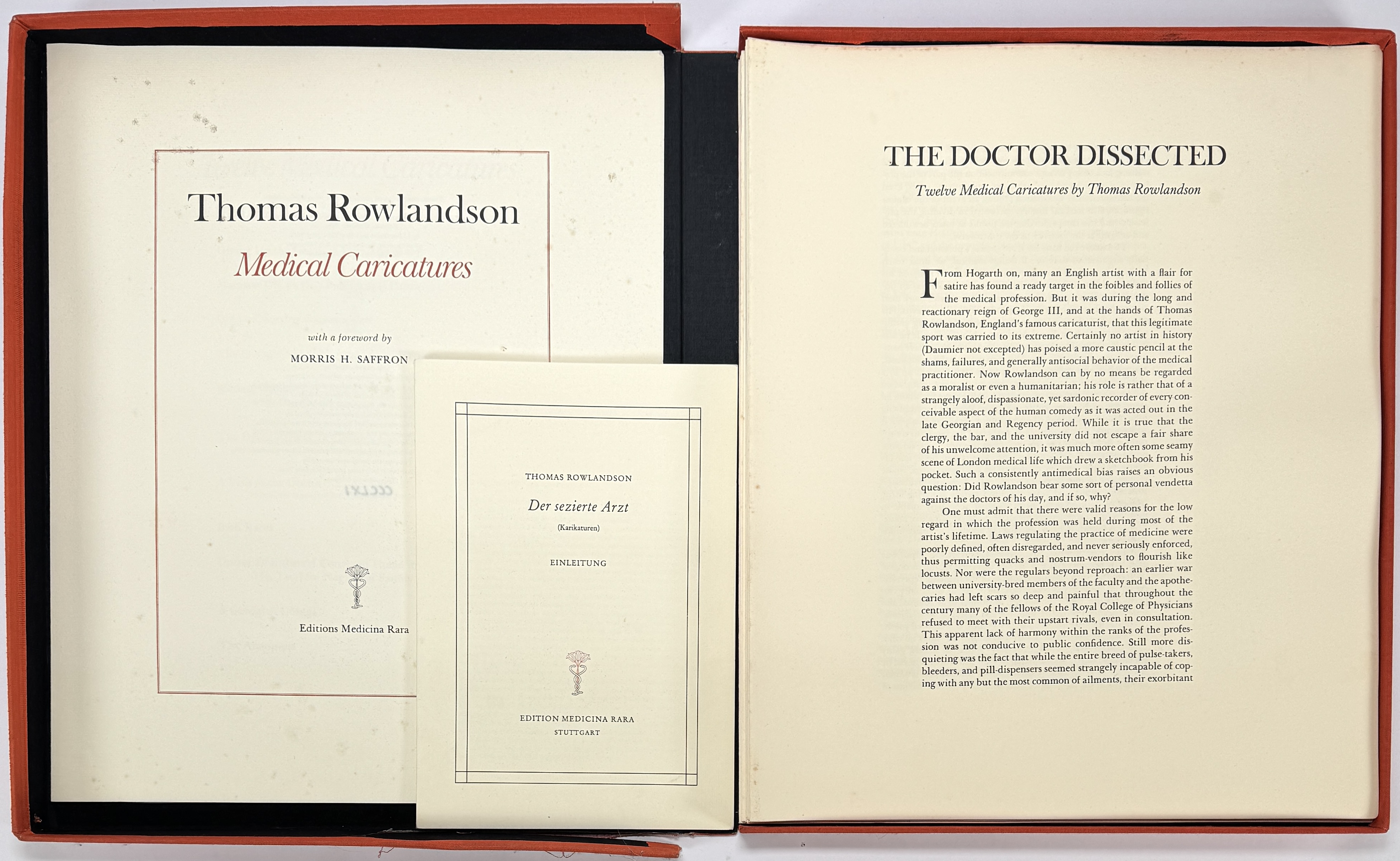 Map met 24 handgekleurde etsen naar Thomas Rowlandson (1757–1827), Medical Caricatures, heruitgegeven door Edition Medicina Rara, Stuttgart, 1971. Gelimiteerde uitgave van 2800 stuks, dit is nummer CCCLXI. De prenten tonen humoristische medische scènes in laat 18e-eeuwse stijl, gedrukt in ets- en aquatinttechniek op handgeschept papier, met begeleidend boekdeel in cassette. Ontdek deze map en voeg het toe aan jouw collectie! Registreer nu voor de veiling. |