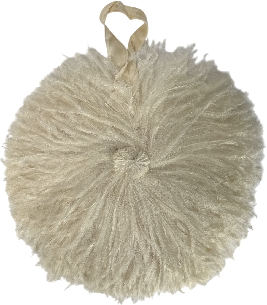 Traditionele ceremoniële set uit de 20e eeuw, bestaande uit een paradijsvogel balg en een ronde hoofdtooi vervaardigd uit witte struisvogelveren, textiel en natuurlijke vezels. Handmatig samengesteld door binden, vlechten en taxidermie. Afkomstig uit Papoea-Nieuw-Guinea en gebruikt in ceremoniële contexten als rituele dans of statusattribuut Wil je de kavel in het echt bekijken? Kom naar de kijkdagen op 28, 29 en 30 november! |