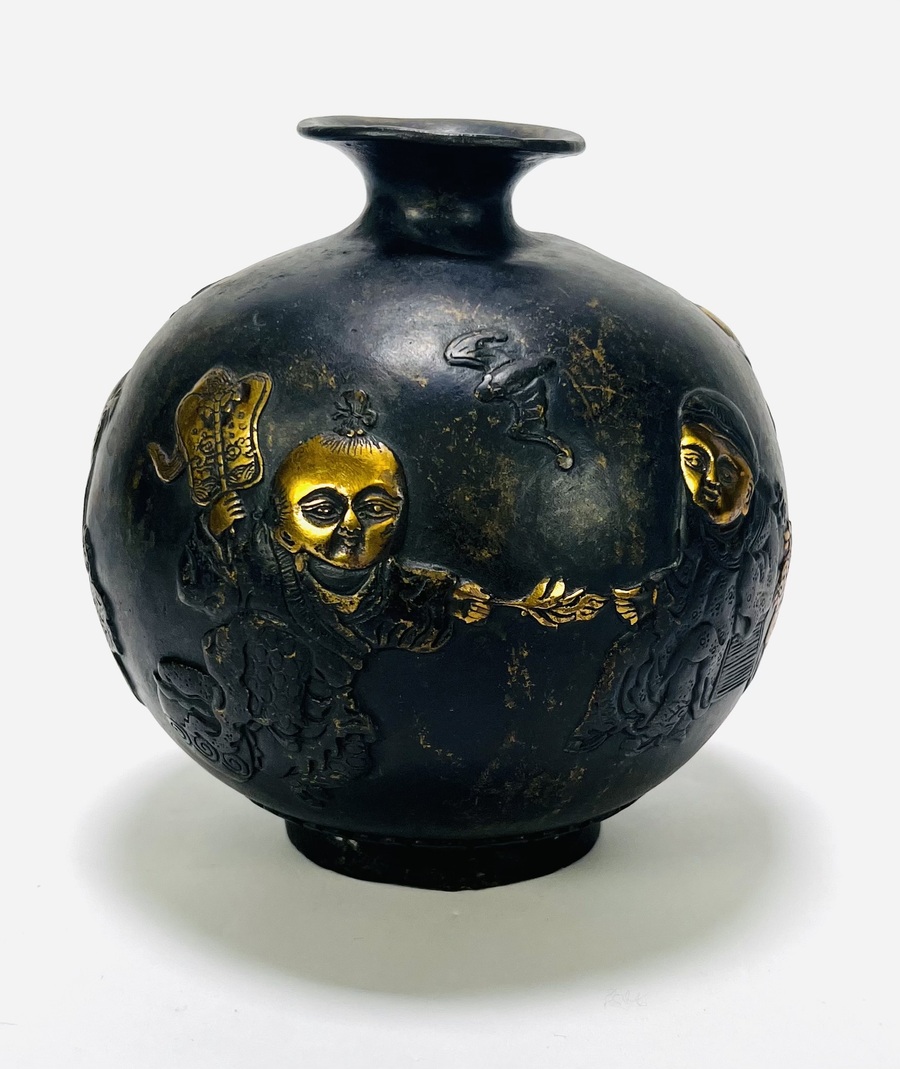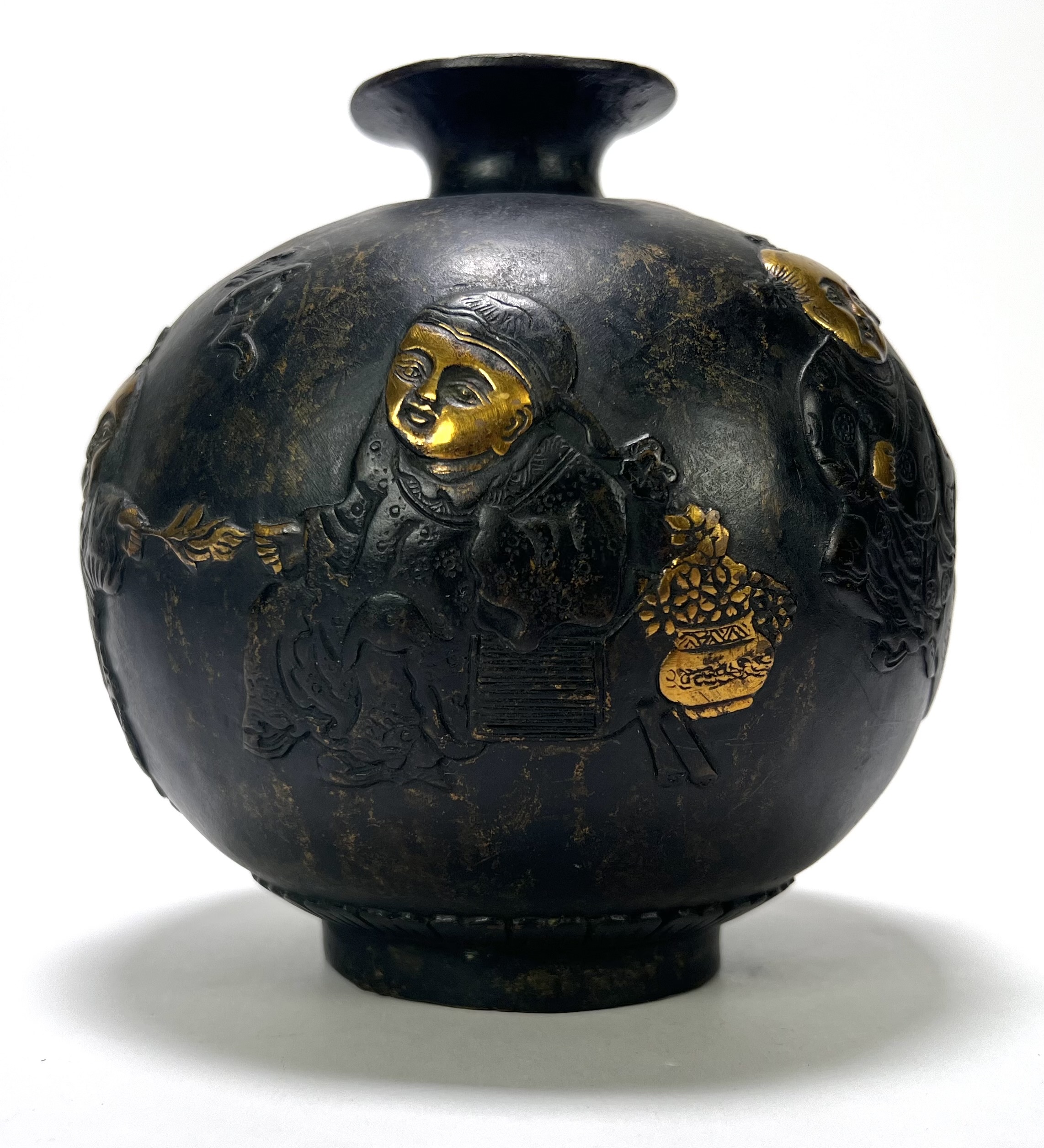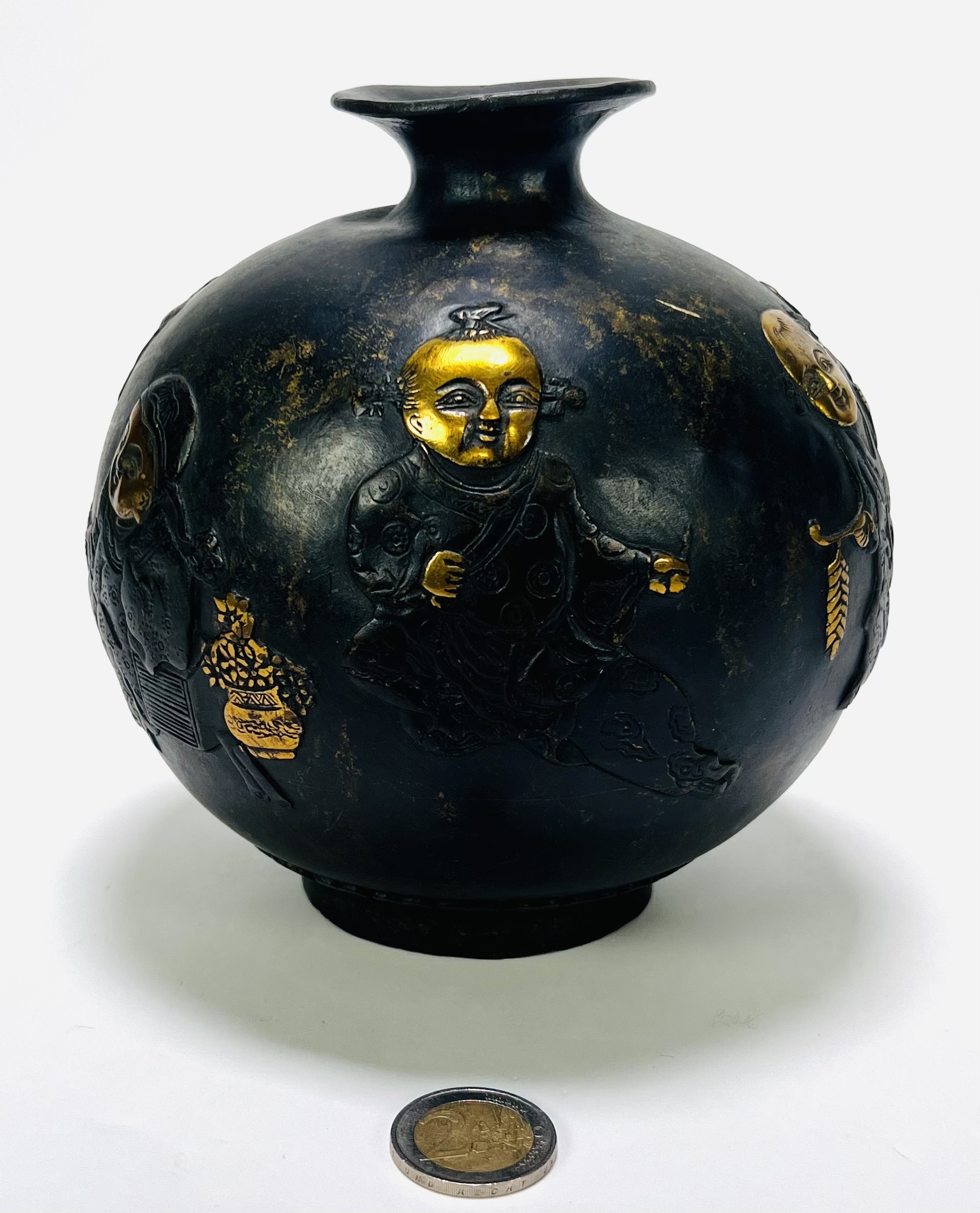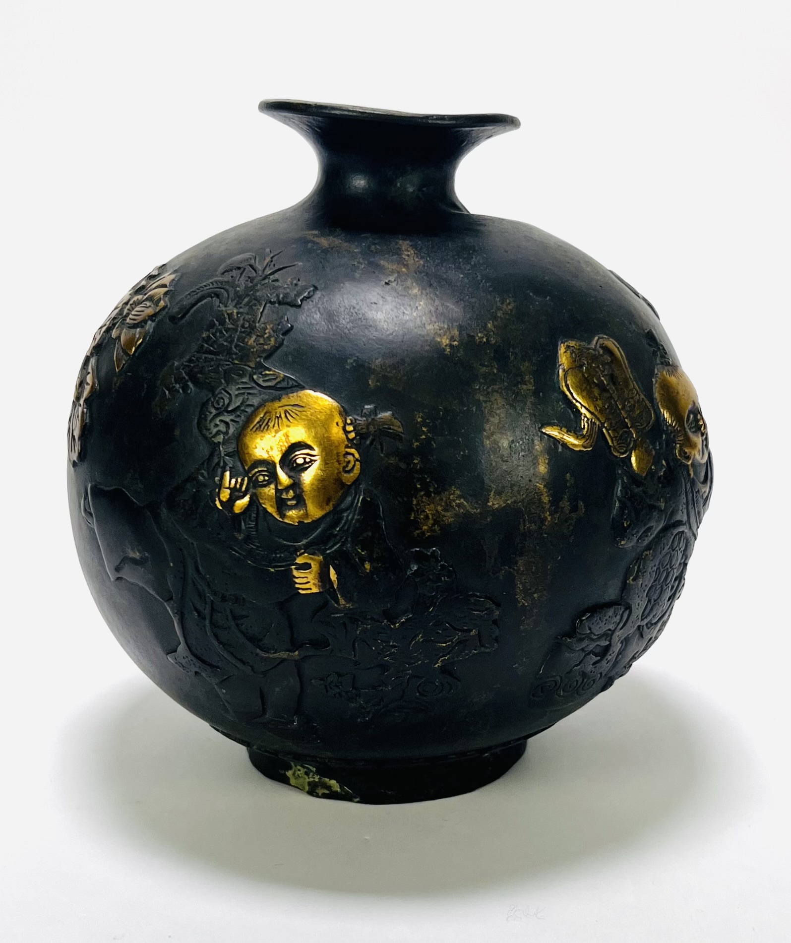 Bronzen vaas, Meiji periode, Japan – reliëfdecor met kinderen