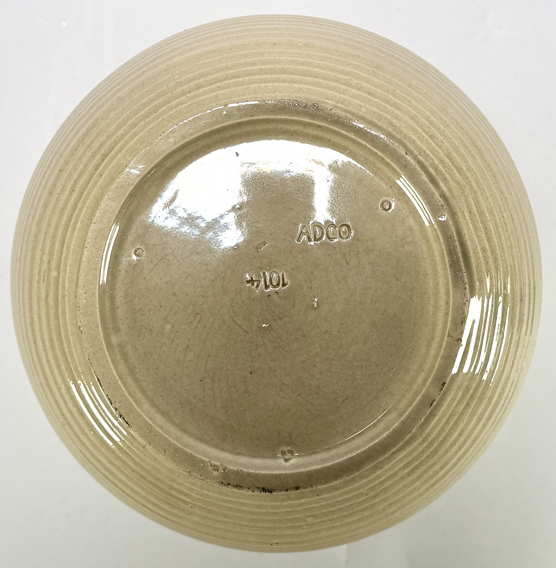 Aardewerken vaas van ADCO, geproduceerd in Nederland door de N.V. Groninger Steenfabriek in de periode 1930–1940. Uitgevoerd in modernistische stijl met een bolle buikvorm, versmalde hals en monochroom glazuur. De vaas is gedraaid en geglazuurd, met aan de onderzijde het fabrieksmerk ADCO. Kom langs tijdens de kijkdagen (28 t/m 30 november) en ontdek deze vaas zelf! |