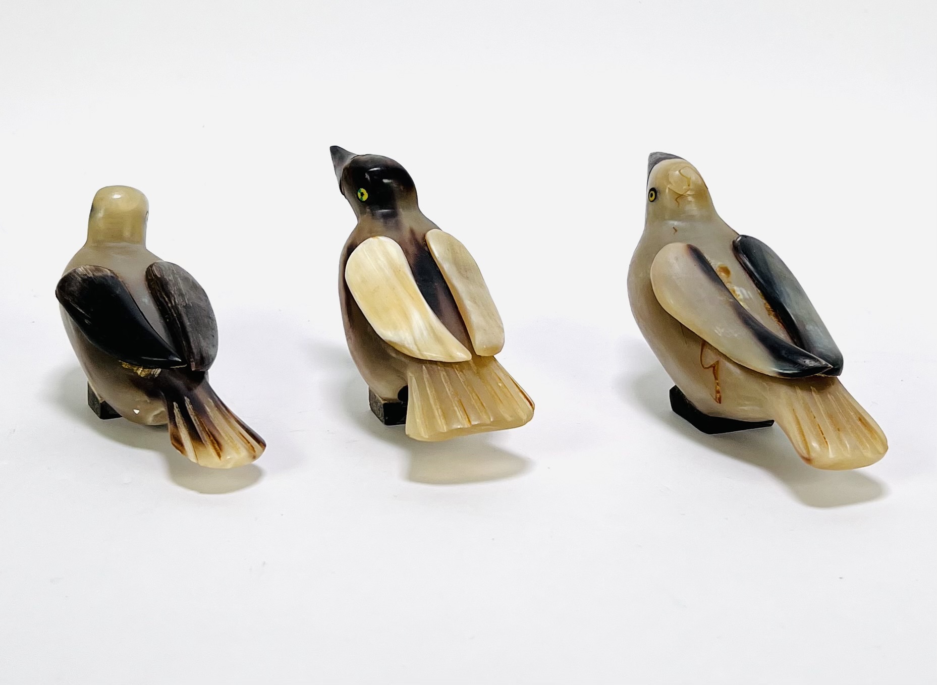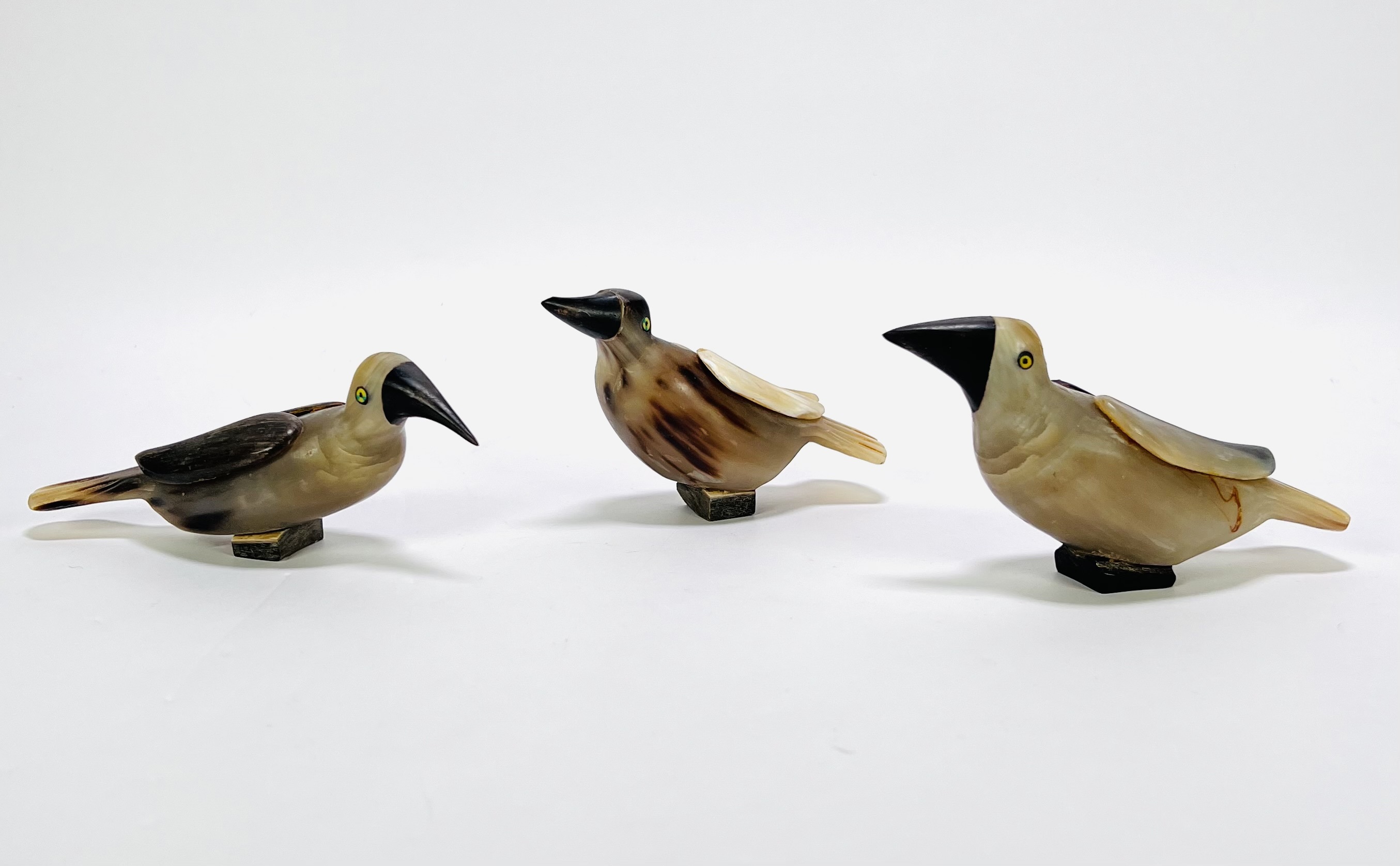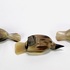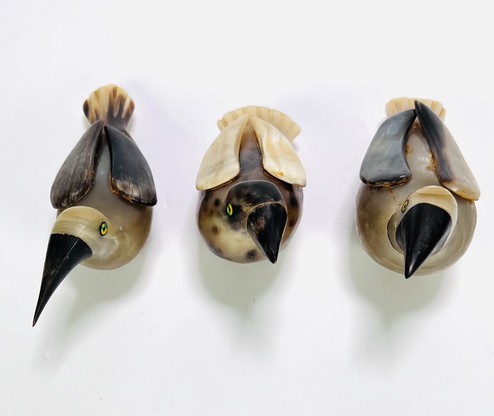 Drie figuratieve vogelbeeldjes gemaakt van gesneden en gevormde hoorn, circa 1950–1970. De beelden kenmerken zich door de natuurlijke, doorschijnende bruine kleur van het hoorn en de gestileerde vorm. De details, zoals de scherpe snavels en de opvallend gele ingelegde ogen, zijn handgemaakt. Geïnteresseerd? Bezoek onze kijkdagen op 28, 29 of 30 november van 11:00 tot 17:00 uur! |