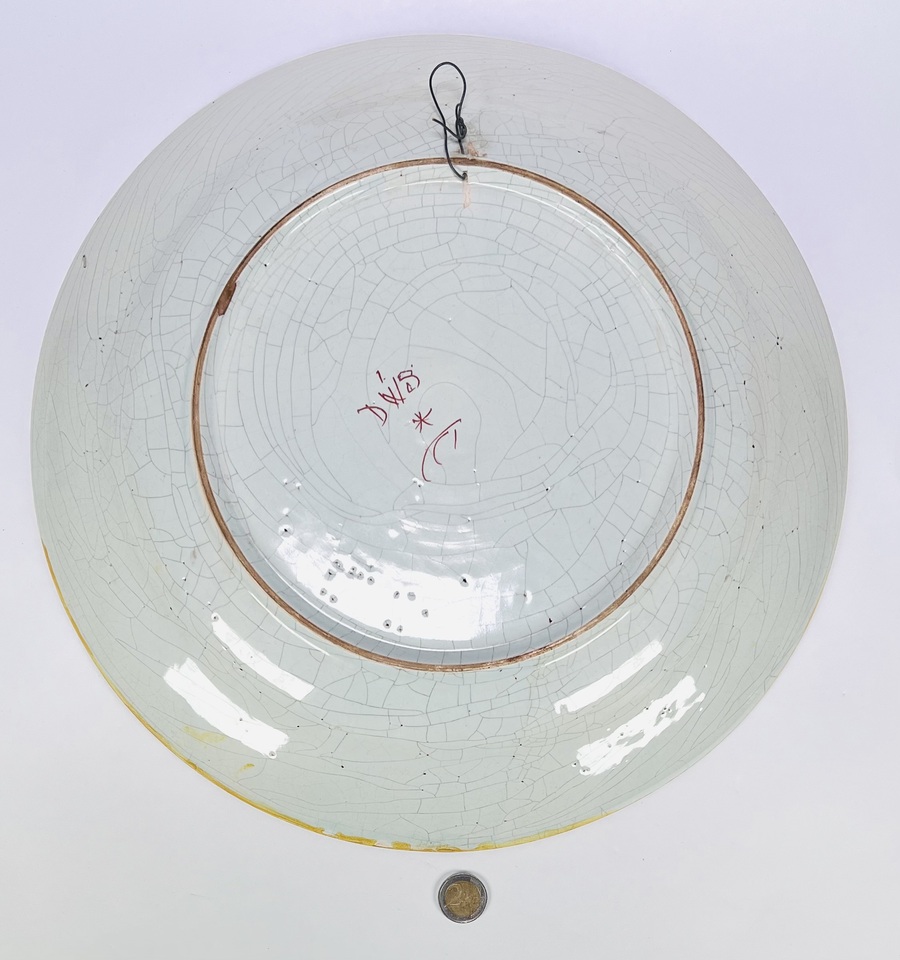 Polychrome schaal van aardewerk, handbeschilderd in de Delftse faïence-traditie, ca. 1720–1760, Nederland. De schaal toont centraal een bloemenmand en florale Rococo-decoratie in de kleuren rood, geel, blauw en groen, met een fijn craqueléglazuur over tinwit fond. Aan de achterzijde is het rode merkteken “DWS” handgeschilderd. Wil je direct deelnemen? Plaats vanaf 21 november alvast een schriftelijk bod via onze website! |