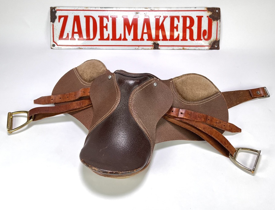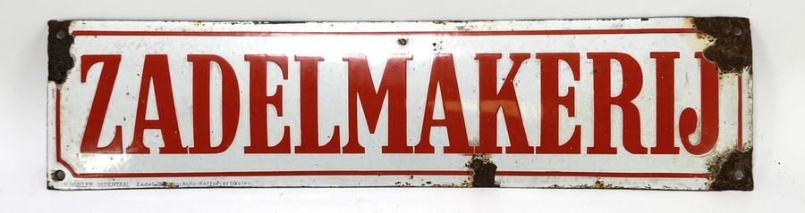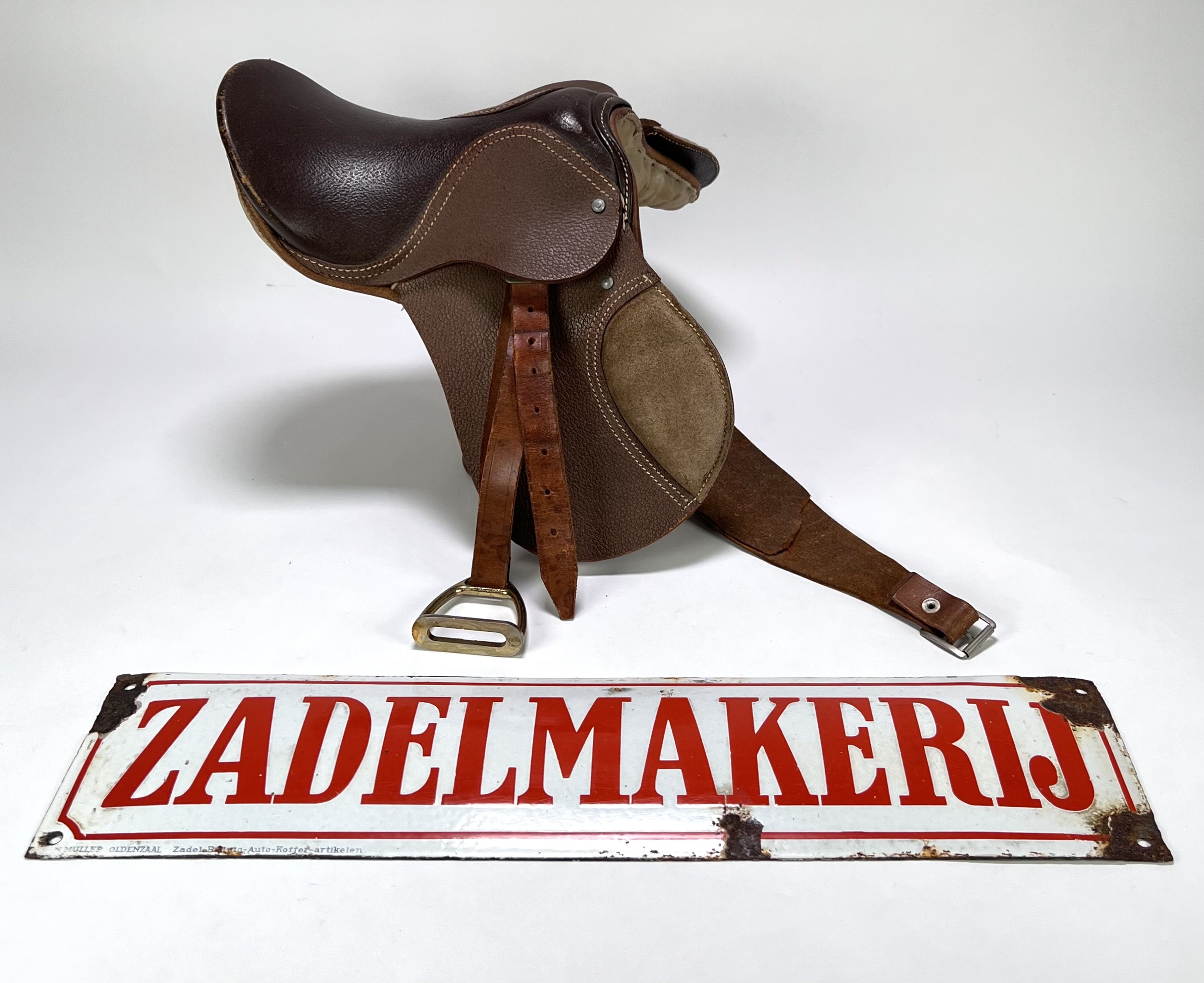 Emaille bord met zadel, eerste helft 20e eeuw, Nederland