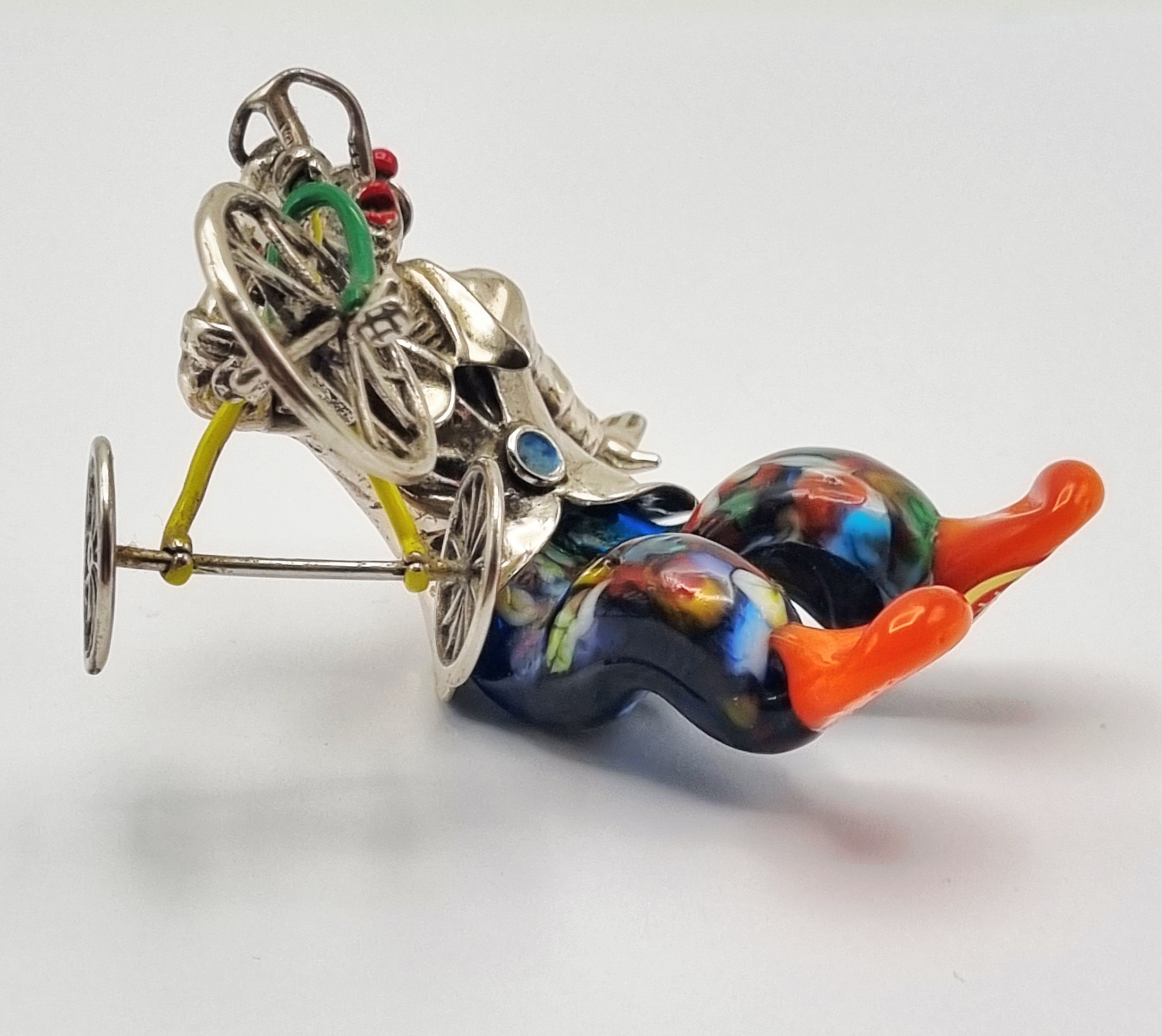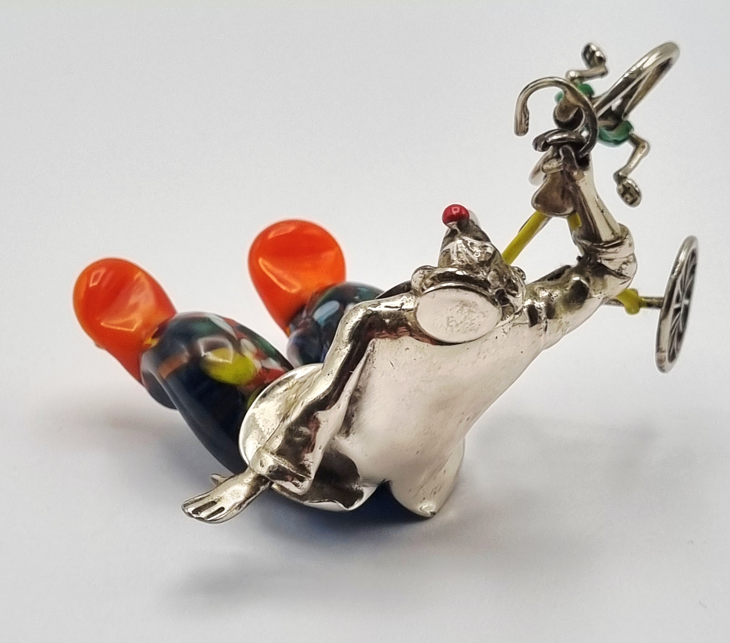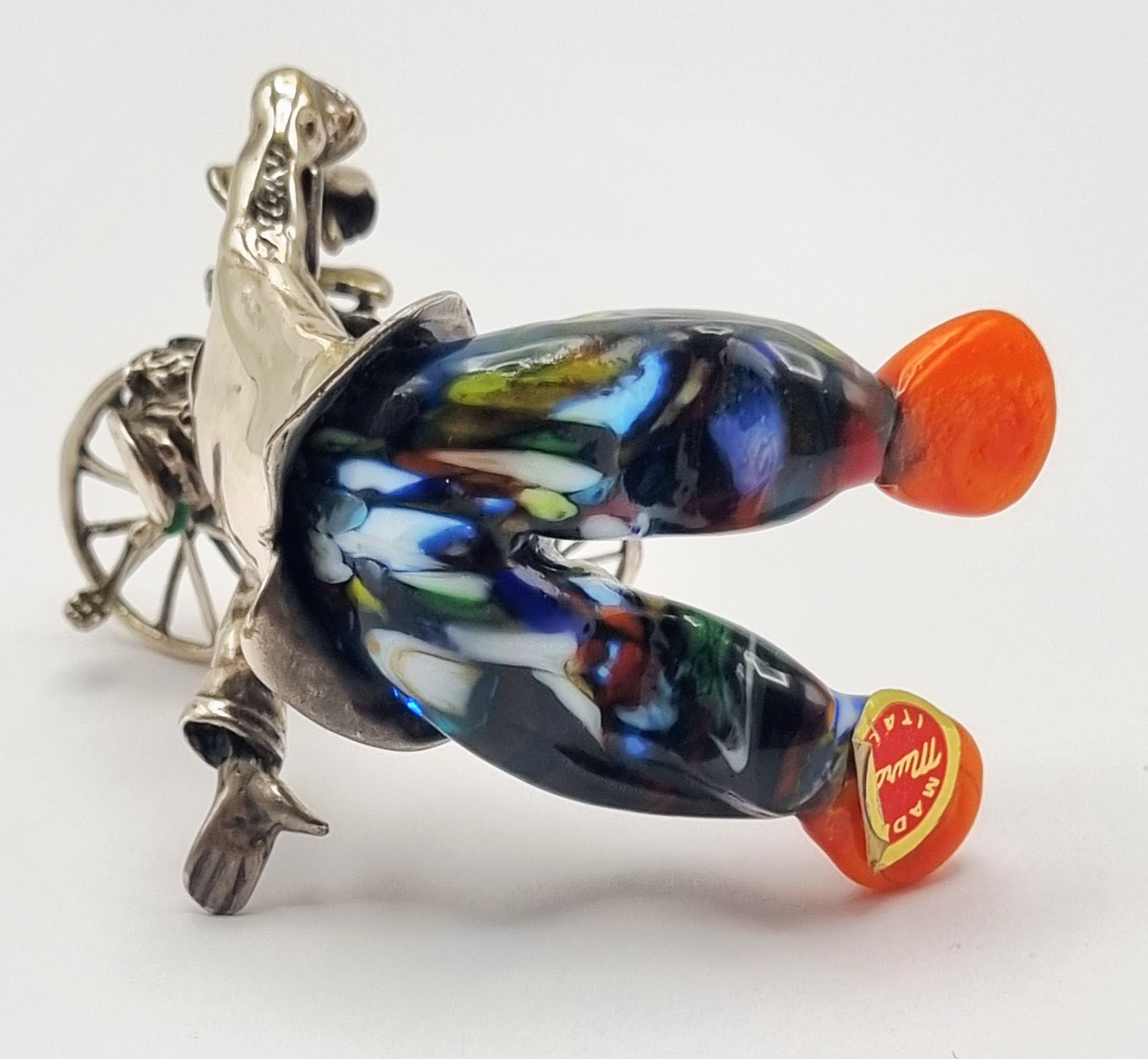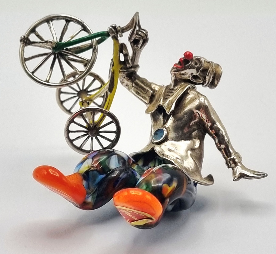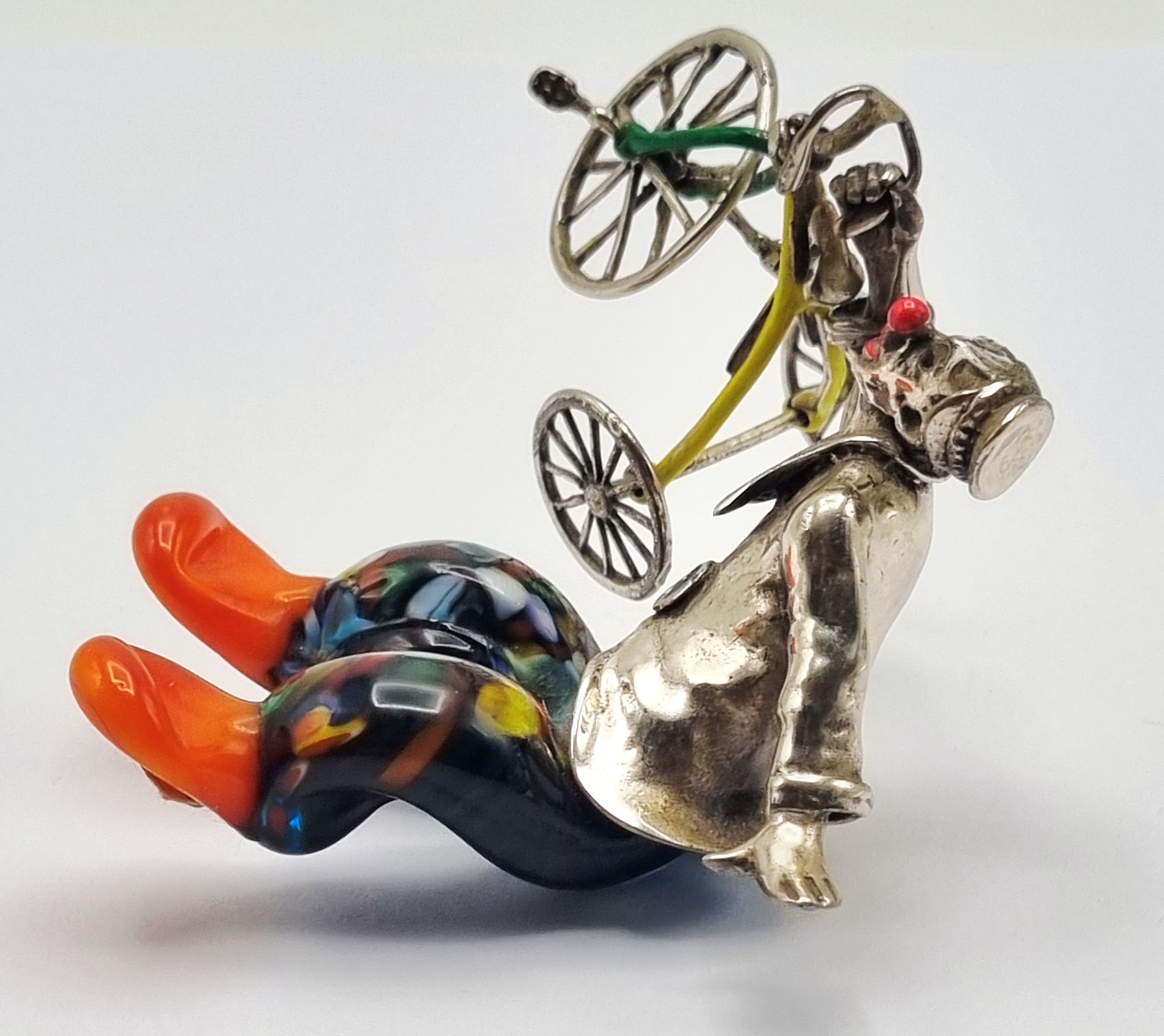 Murano/zilver clown met fiets, Vittorio Ancini Italië