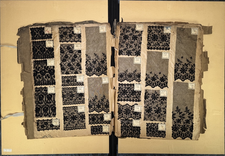 282. Textiel stalenboek, tweede helft 19e eeuw, archief met kantstalen