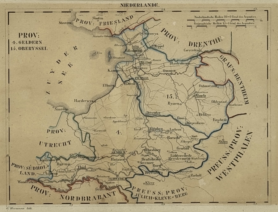 279. Litho, O. Hermann – Niederlande, kaart van Gelderland en Overijssel, ca. 1850