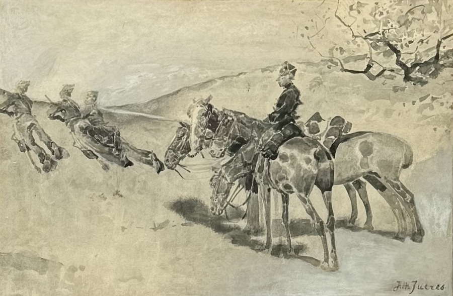 380. Aquarel, J.H. Jurres – militair tafereel met cavalerie, begin 20e eeuw