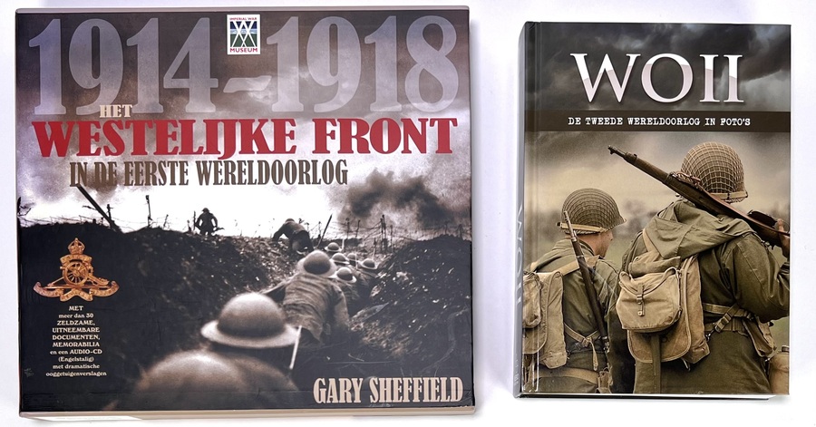 Twee geïllustreerde non-fictieboeken, uitgevoerd in industriële offsetdruk op papier, met harde kaften, over de Wereldoorlogen. Het eerste boek, van Gary Sheffield, gaat over "Het Westelijke Front" en bevat een cd. Het tweede boek, "WO II", is een fotoboek over de Tweede Wereldoorlog. Beide uitgaven van circa 2010–2020 richten zich op visuele verslaggeving en militaire geschiedenis.