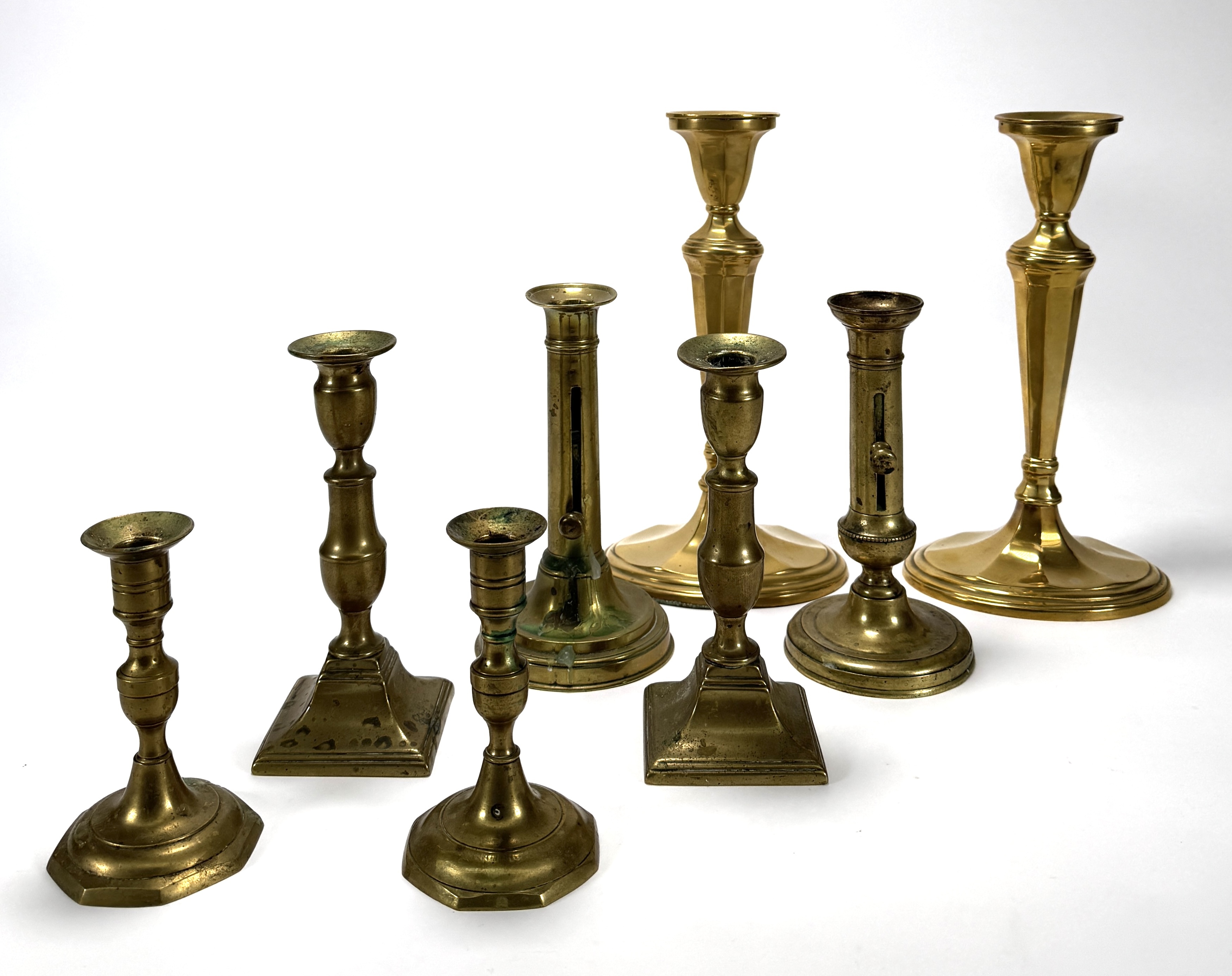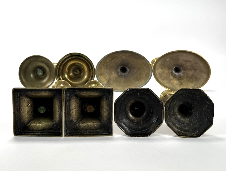 Acht antieke messing kandelaren, bestaande uit drie paren en twee lossen kandelaren met diverse voetvormen. De kandelaren dateren uit de 19e/20e eeuw. Wil je deze messing kandelaren in het echt bekijken? Kom naar de kijkdagen op 28, 29 en 30 november! |