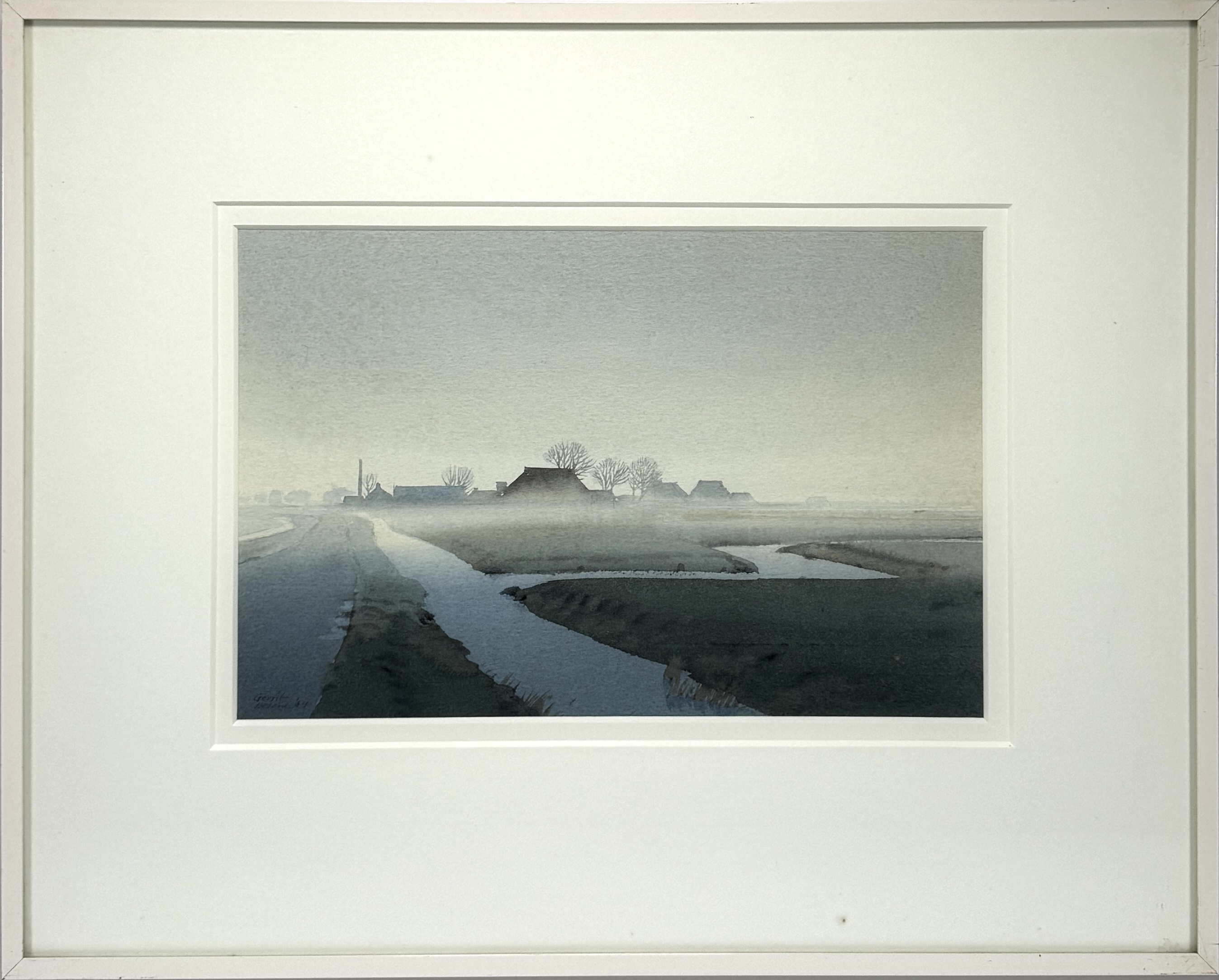 Aquarel, Gerrit Neven - polderlandschap, 1984