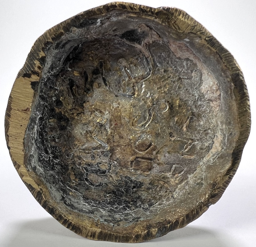 Expressionistisch bronzen beeld, gegoten via de cire perdue methode en daterend uit het derde kwart van de 20e eeuw. Het abstracte beeld stelt een langgerekte menselijke figuur voor en heeft een ruwe, organische textuur met een contrasterende donkere patine en glanzende gouden accenten. Een onduidelijke signatuur is te zien op de onderzijde. Registreer nu en bied eenvoudig online mee op dit bronzen beeld! |