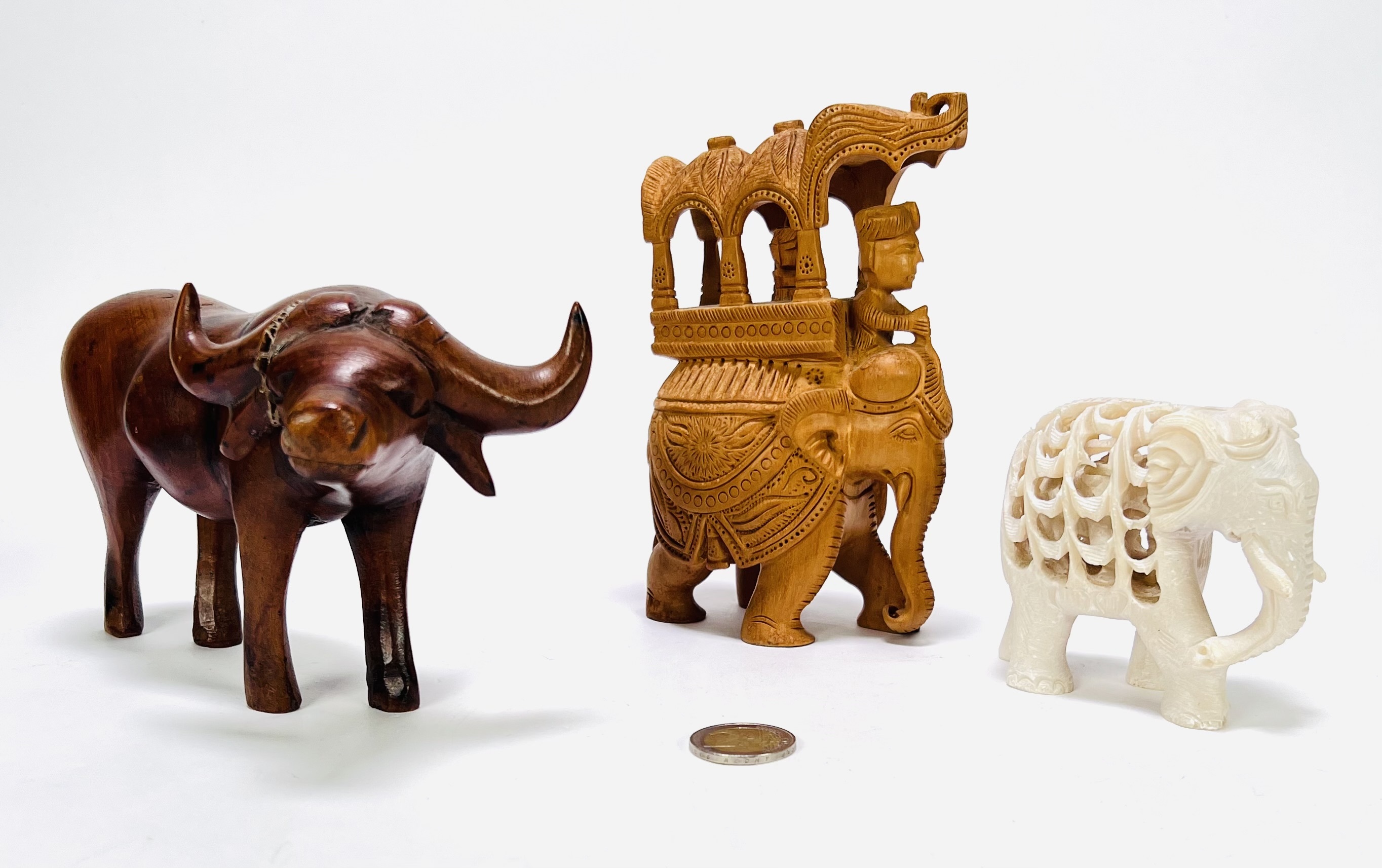 Houtsnijwerk -olifanten en buffel, Azië, ca. 1950-1980