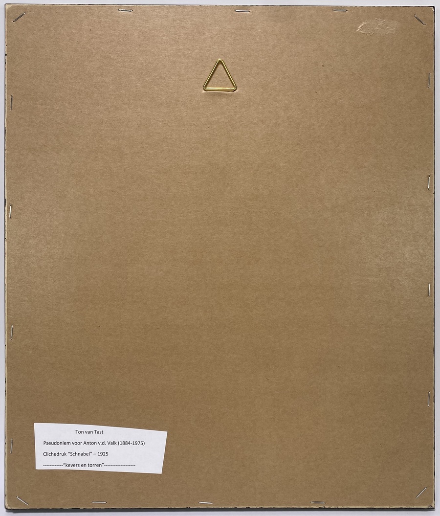 Lithografie op papier door Anton van der Valk (1884–1975), bekend onder het pseudoniem Ton van Tast, getiteld “kevers en torren”. Uitgegeven door Cliché Schnabel in 1925. Het werk toont in Art Deco stijl een grafische compositie van insecten in contrasterende kleuren, voorzien van druksignatuur. Registreer nu en bied eenvoudig online mee op deze lithografie! |
