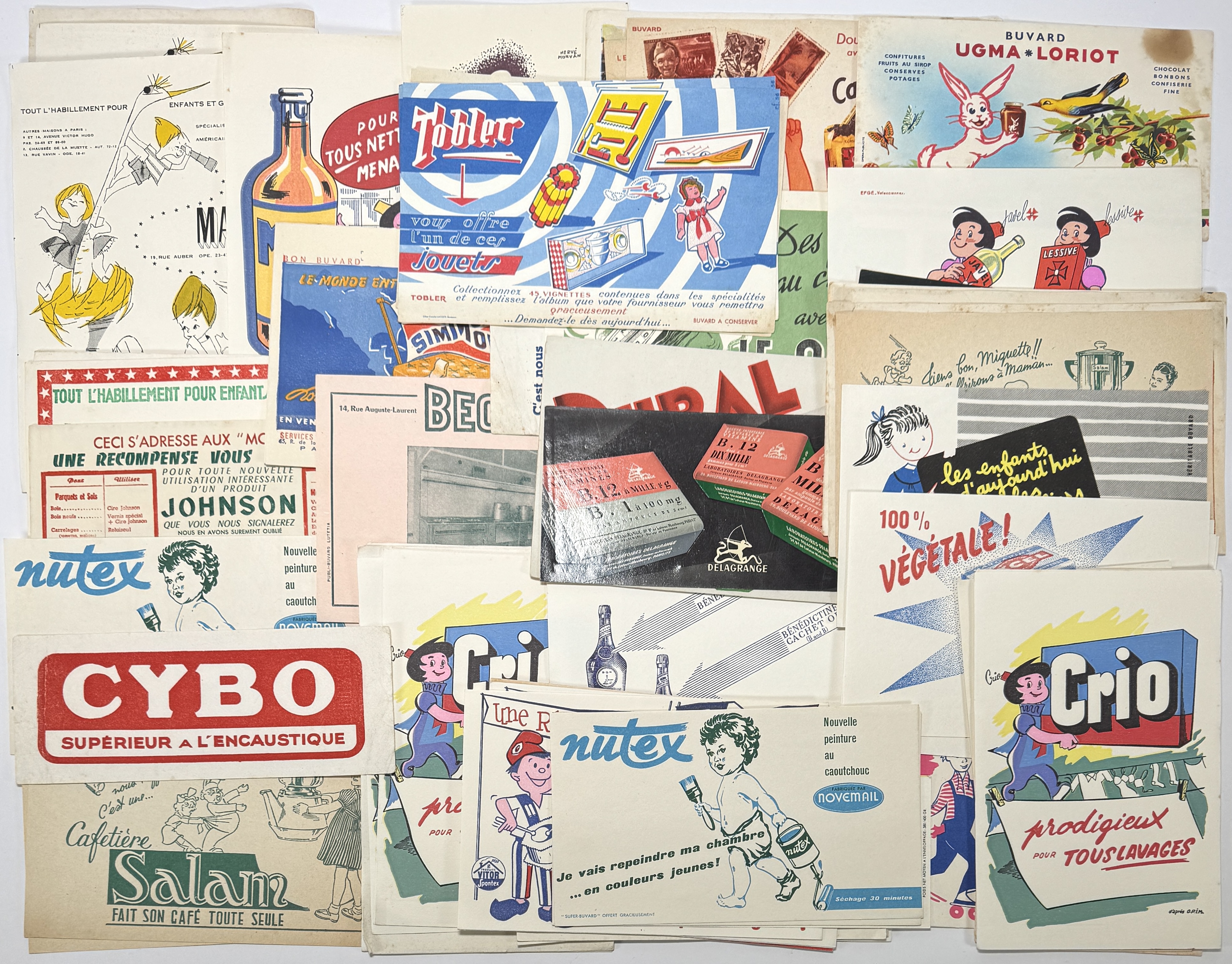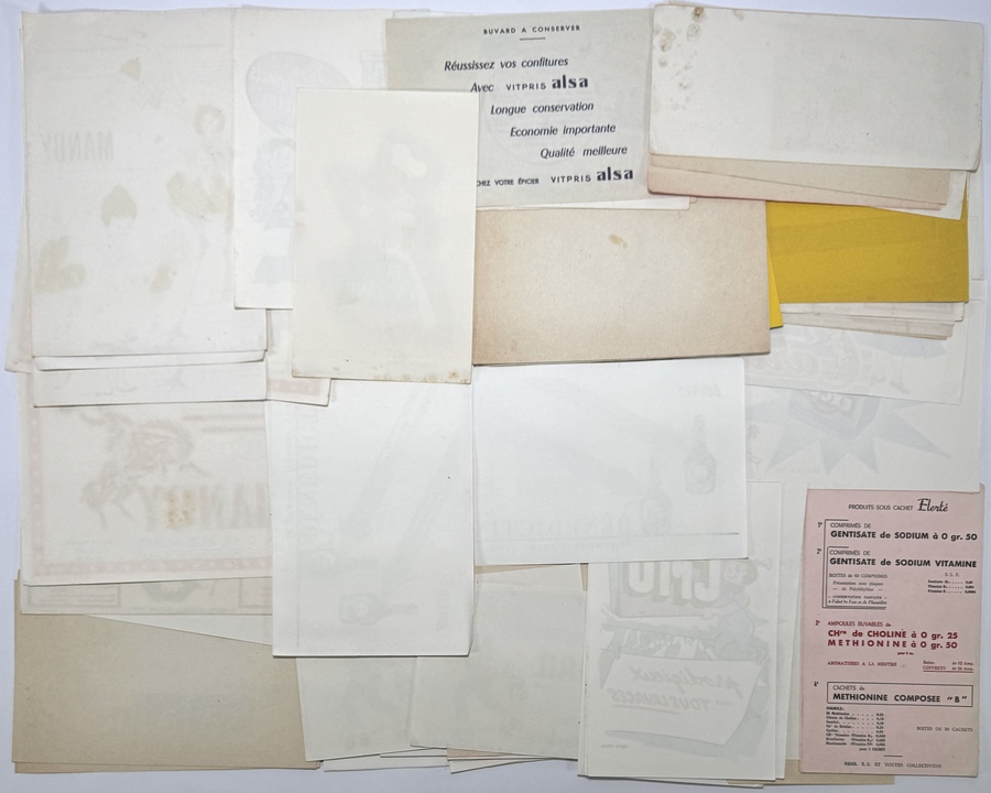 Verzameling Franse reclamebuvards (vloeipapier), circa 1945–1965