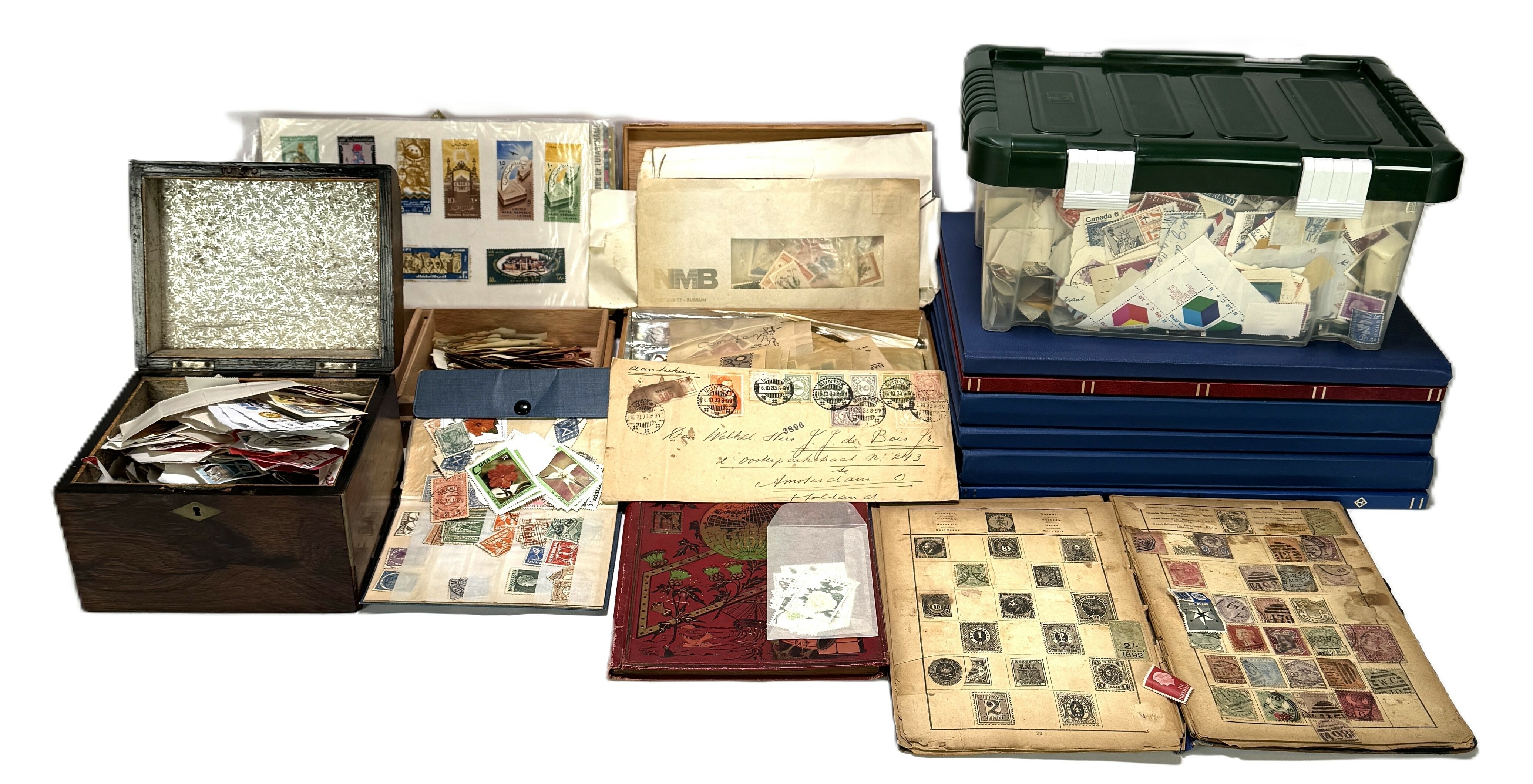 Verzameling postzegels en poststukken uit de periode late 19e eeuw tot midden 20e eeuw van over de hele wereld. Gebruikt, ongebruikt, postfris. De collectie bevat albums, losse zegels en een historische envelop met het stempel 'Muntok' (Nederlands-Indië), gedateerd 1933. Opvallend is een complete serie ongestempelde Chinese Pioenroos zegels uit 1964/1965. Zeker zijn van deelname? Plaats vanaf 21 november een schriftelijk bod online! |
