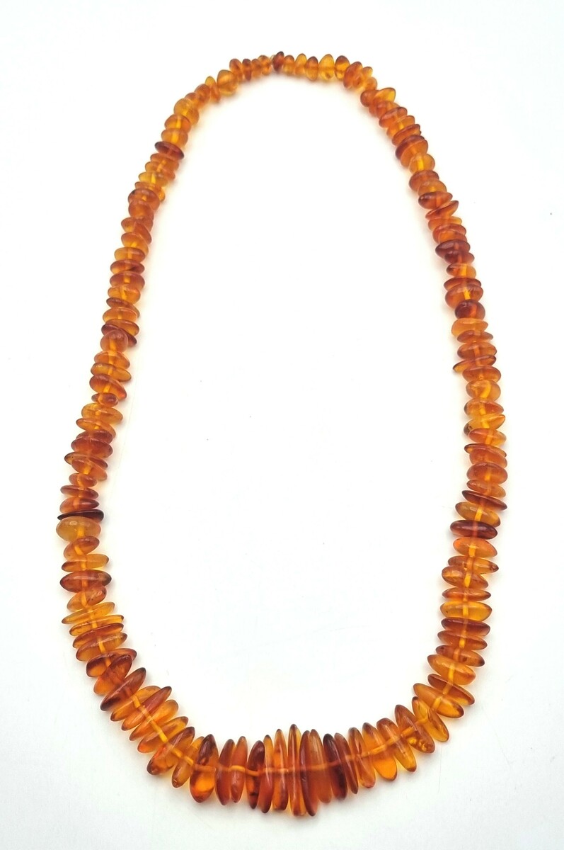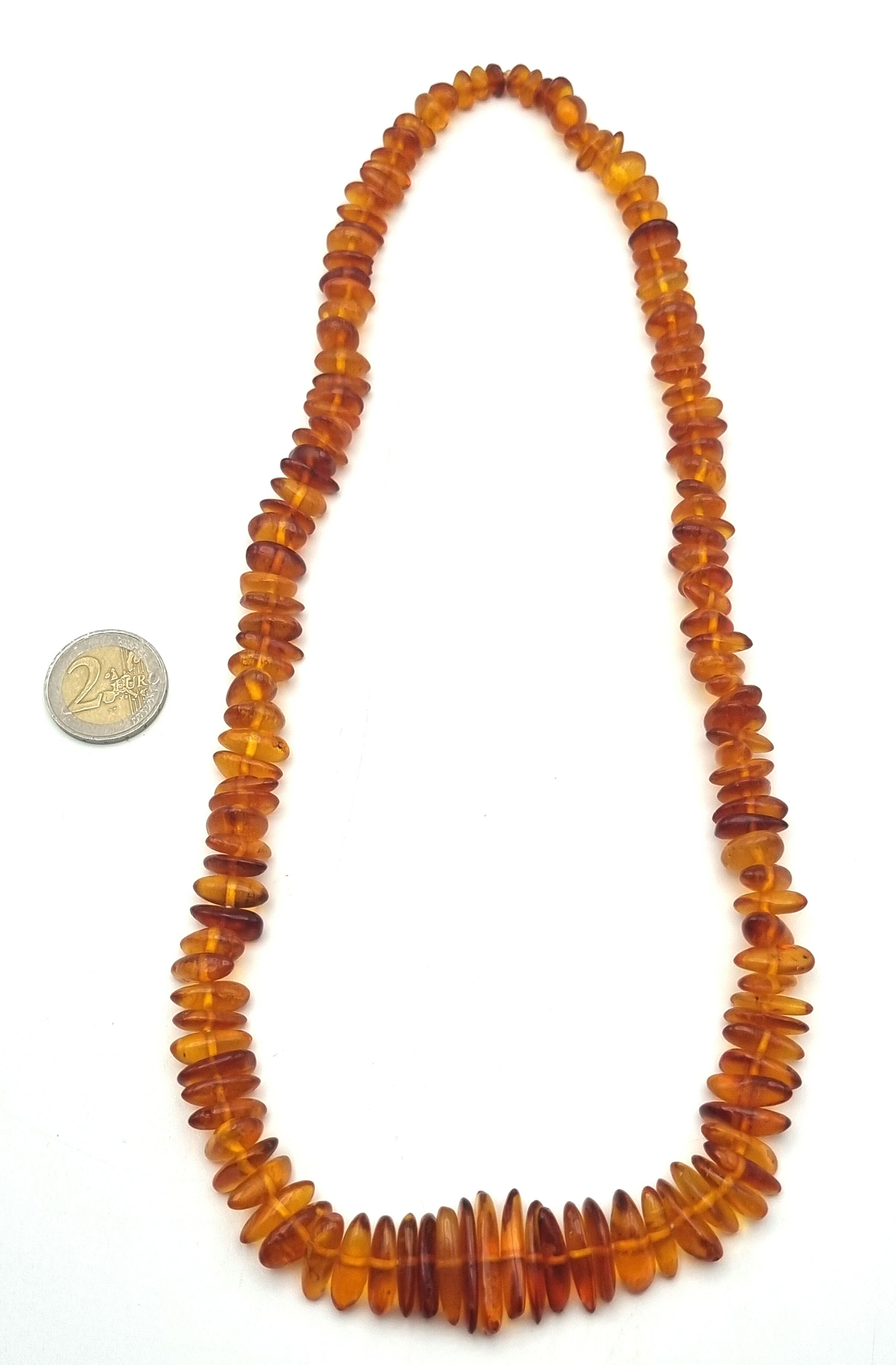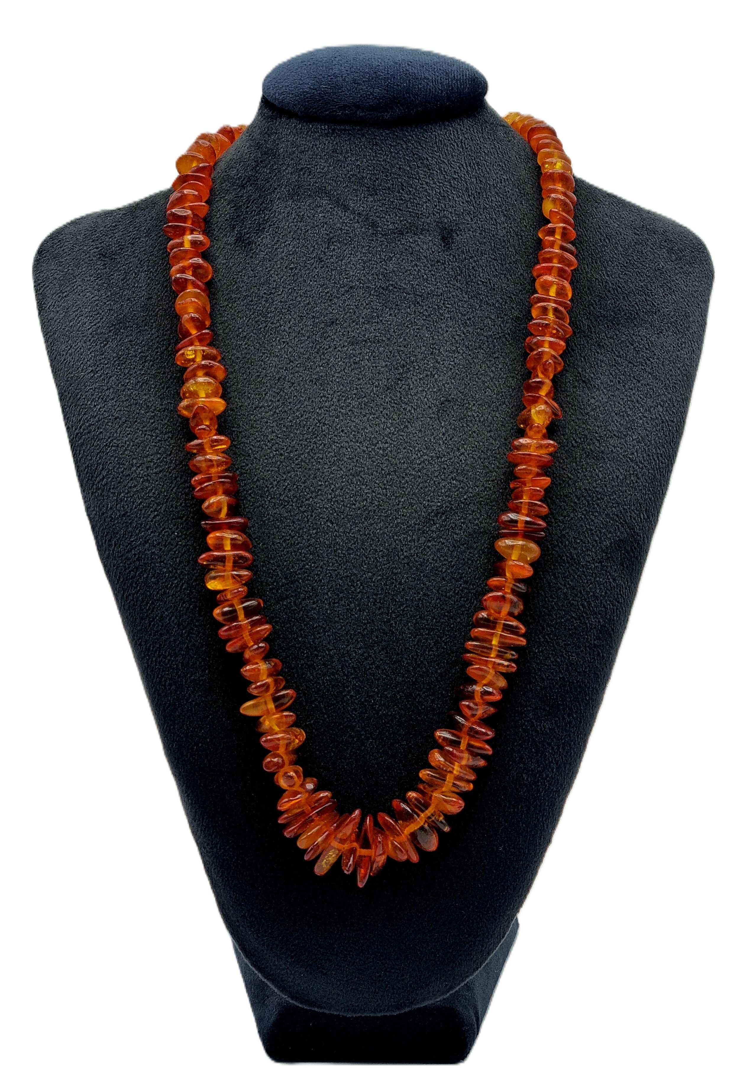 Barnstenen halsketting vervaardigd door het slijpen en polijsten van organische barnsteenfragmenten uit de Baltische regio. De halsketting kenmerkt zich door een gegradueerde opbouw met variërende stukken in honinggele en oranjebruine tinten, gedateerd derde kwart 20e eeuw. Wil je de halsketting in het echt bekijken? Kom naar de kijkdagen op 28, 29 en 30 november! |