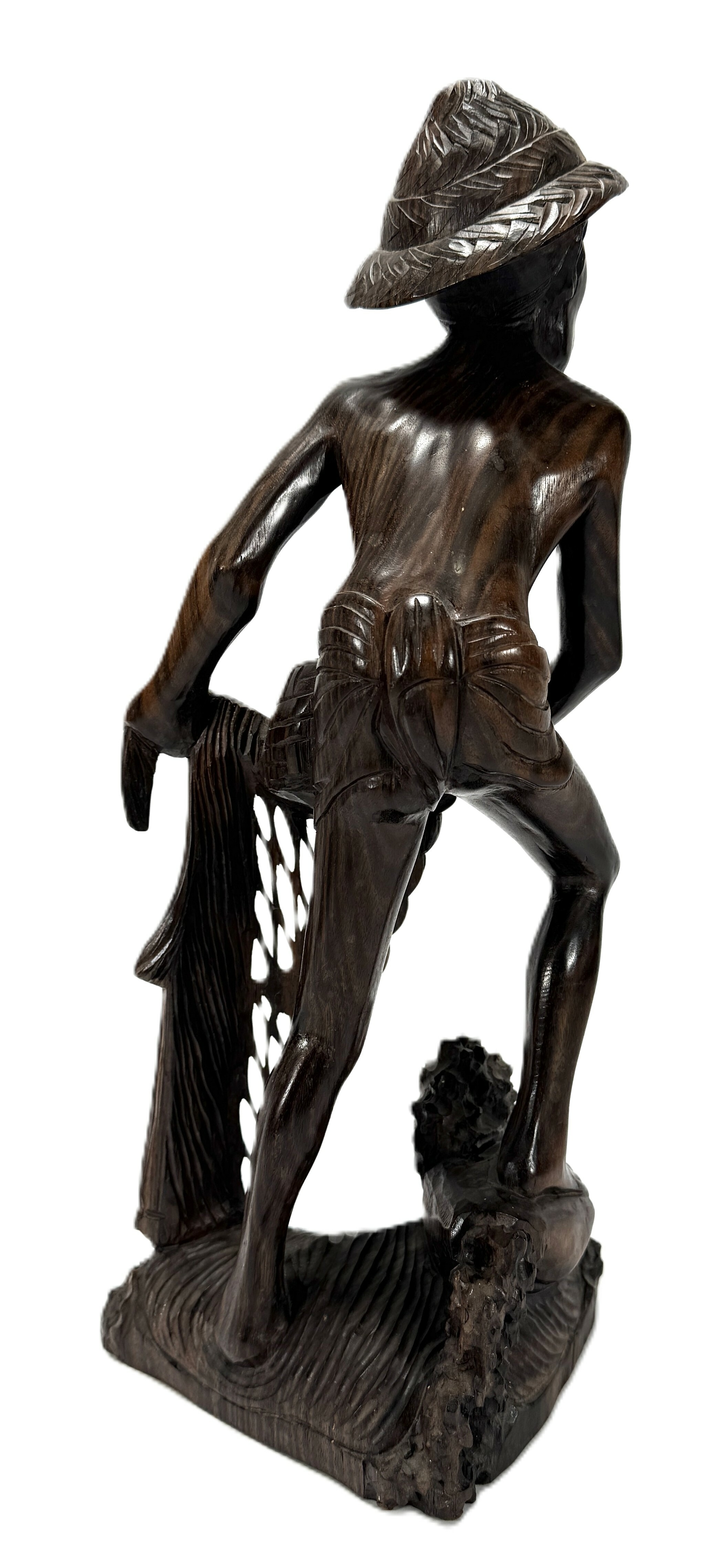 Houten beeld, visser - Indonesië, tweede helft 20e eeuw