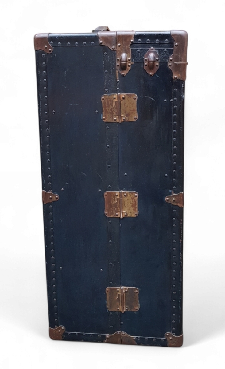 Vintage Wardrobe Trunk van de Hartmann Trunk Company Verenigde Staten, uitgevoerd in geweven canvas op een houten raamwerk met gebronsd ijzeren beslag. Deze kledingkastkoffer uit het eerste kwart 20e eeuw opent verticaal en bevat een compartiment met hangerrail en lades, bekleed met bedrukt textiel. Het model is van het type Cushion Top ("Victor"). Klaar om te bieden? Registreer je nu en doe mee aan de veiling! |