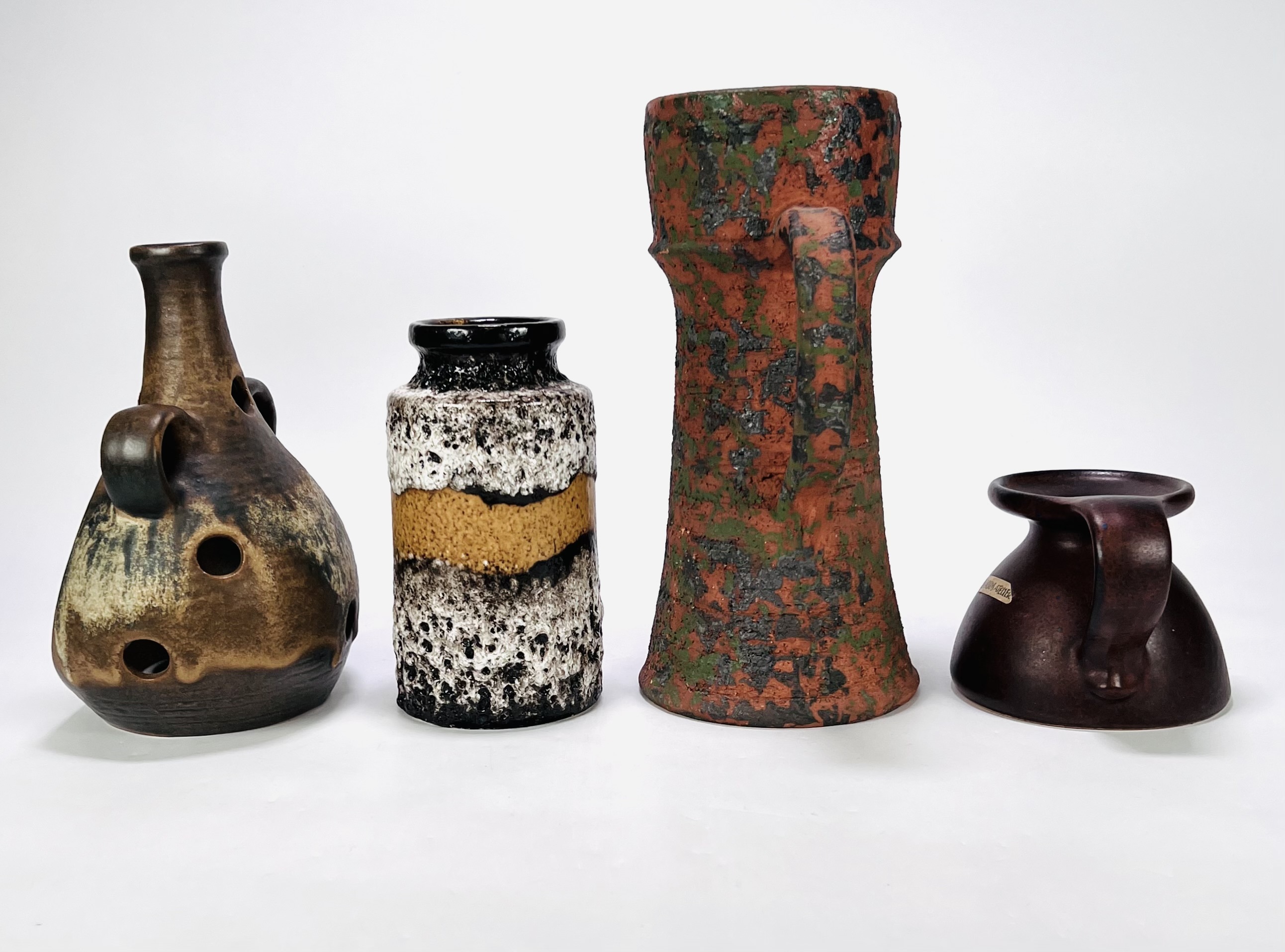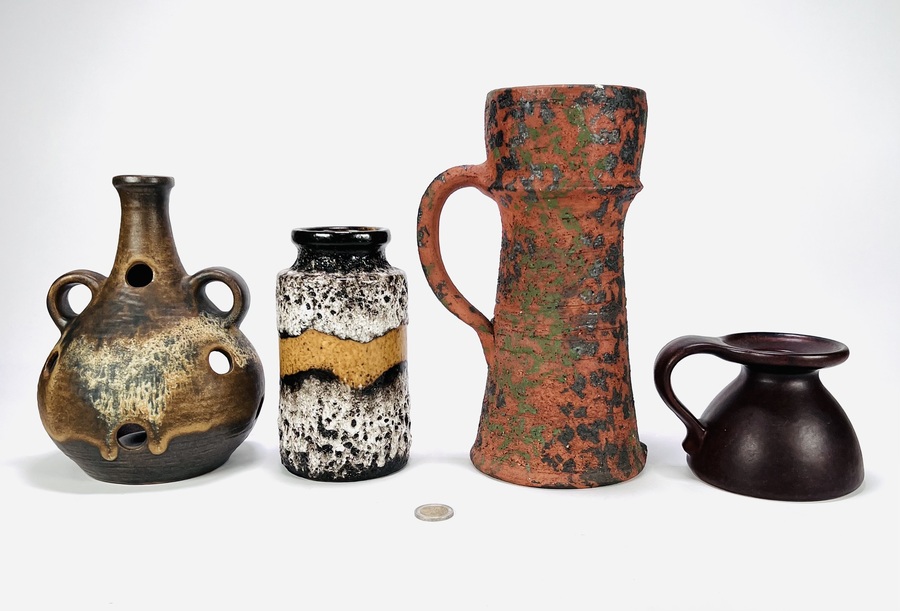 Een vaas, windlicht en twee kannen uit de Mid-century modern periode, daterend midden 20 eeuw. Het lot bevat onder andere een West-Duitse Fat Lava vaas, een schenkkan van Carstens Atelier en een schenkkan van Potterie Steenenkop Handwerk. Alle objecten zijn vervaardigd van aardewerk door middel van draaien en glazuren. Wil je direct deelnemen? Plaats vanaf 21 november alvast een schriftelijk bod via onze website! |