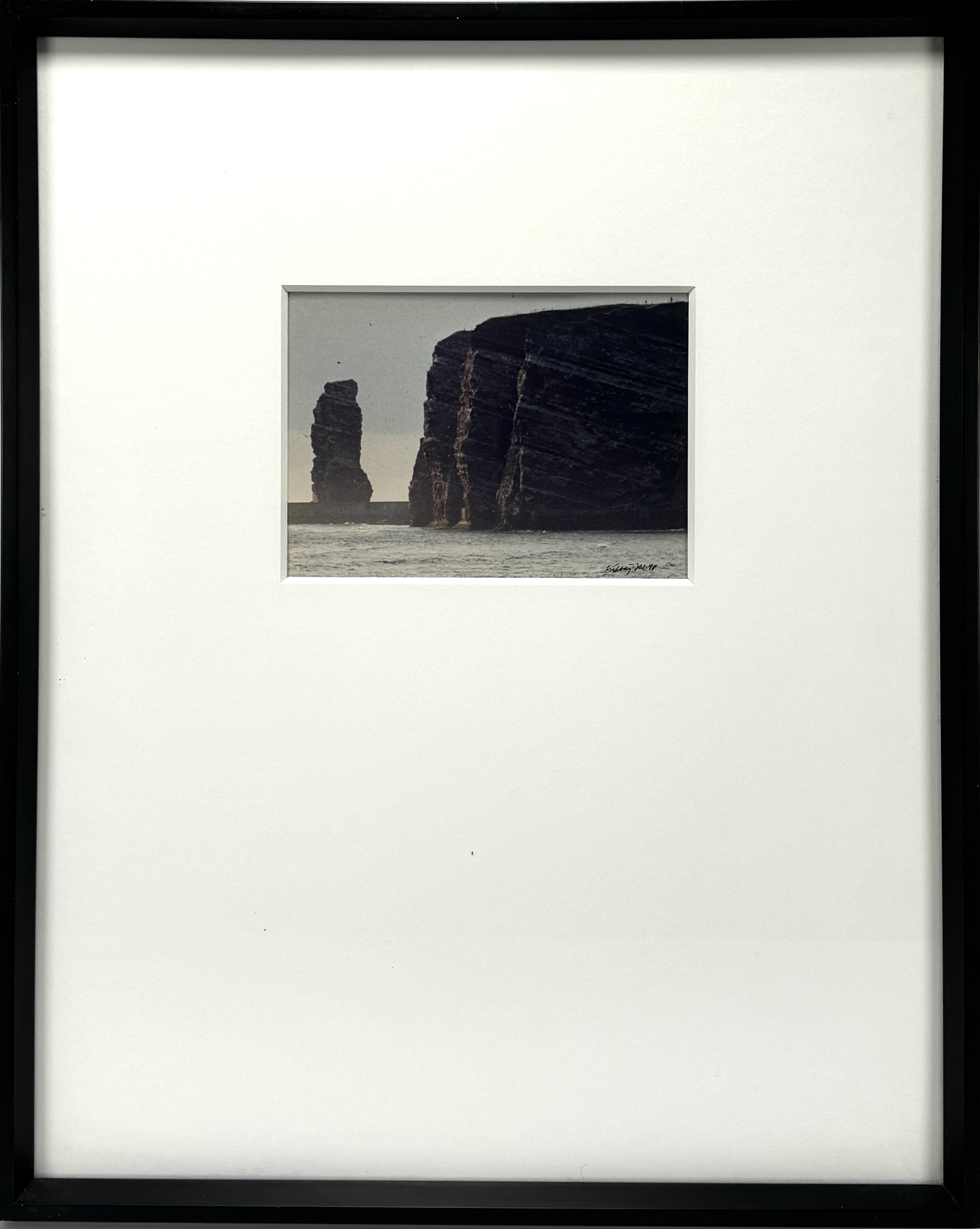Deze analoge kleurenfotoprint op fotopapier, gemonteerd onder passe-partout, is een landschappelijke opname uit 1998. Het werk is rechtsonder onduidelijk gesigneerd en gedateerd '98. De voorstelling toont een rotsformatie met een vrijstaande rotszuil in zee. Klaar om te bieden? Registreer je nu en doe mee aan de veiling! |