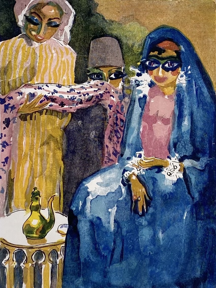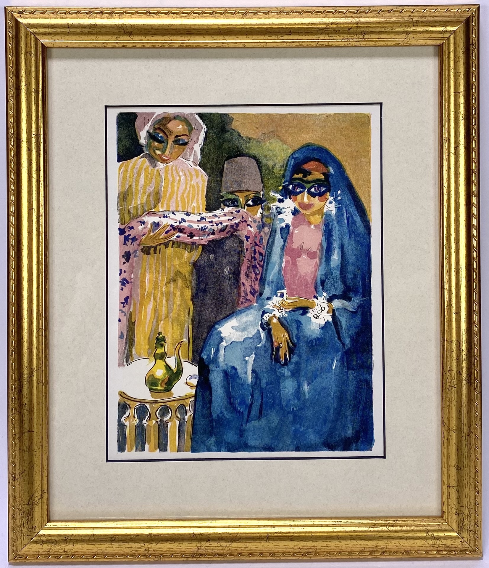 Kleurenhoutsnede op papier door Kees van Dongen (1877–1968), getiteld “La Femme au voile bleu”, gedrukt in 1955. De expressieve voorstelling toont drie figuren in oosterse gewaden met een centrale vrouw in blauw en warme accenten in geel en roze, typerend voor het fauvisme. Eerst deze kleurenhoutsnede zien voordat je biedt? Bezoek onze kijkdagen op 28, 29 en 30 november van 11:00 tot 17:00 uur! |