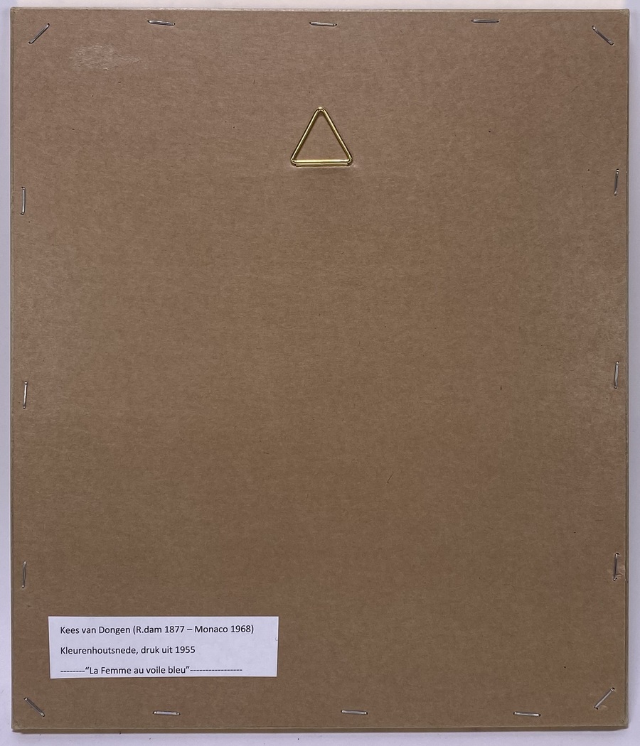 | Kavelnummer en naam | 1412. Kleurenhoutsnede, Kees van Dongen – “La Femme au voile bleu”, 1955 | |